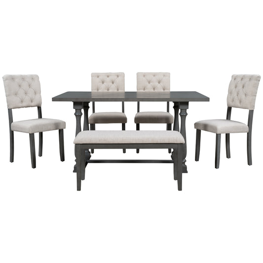 Dining Table and Chair Set with Special-shaped Legs and Foam-covered Seat Backs & Cushions