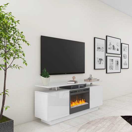 Modern White Electric Fireplace TV Stand