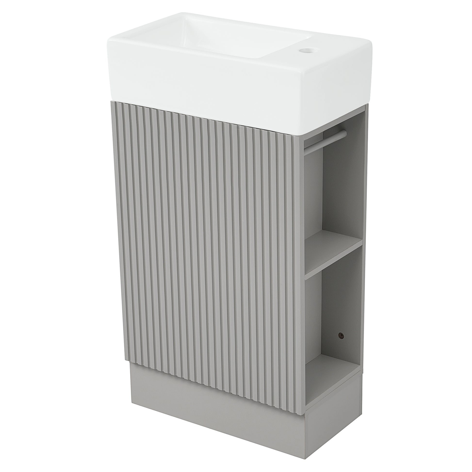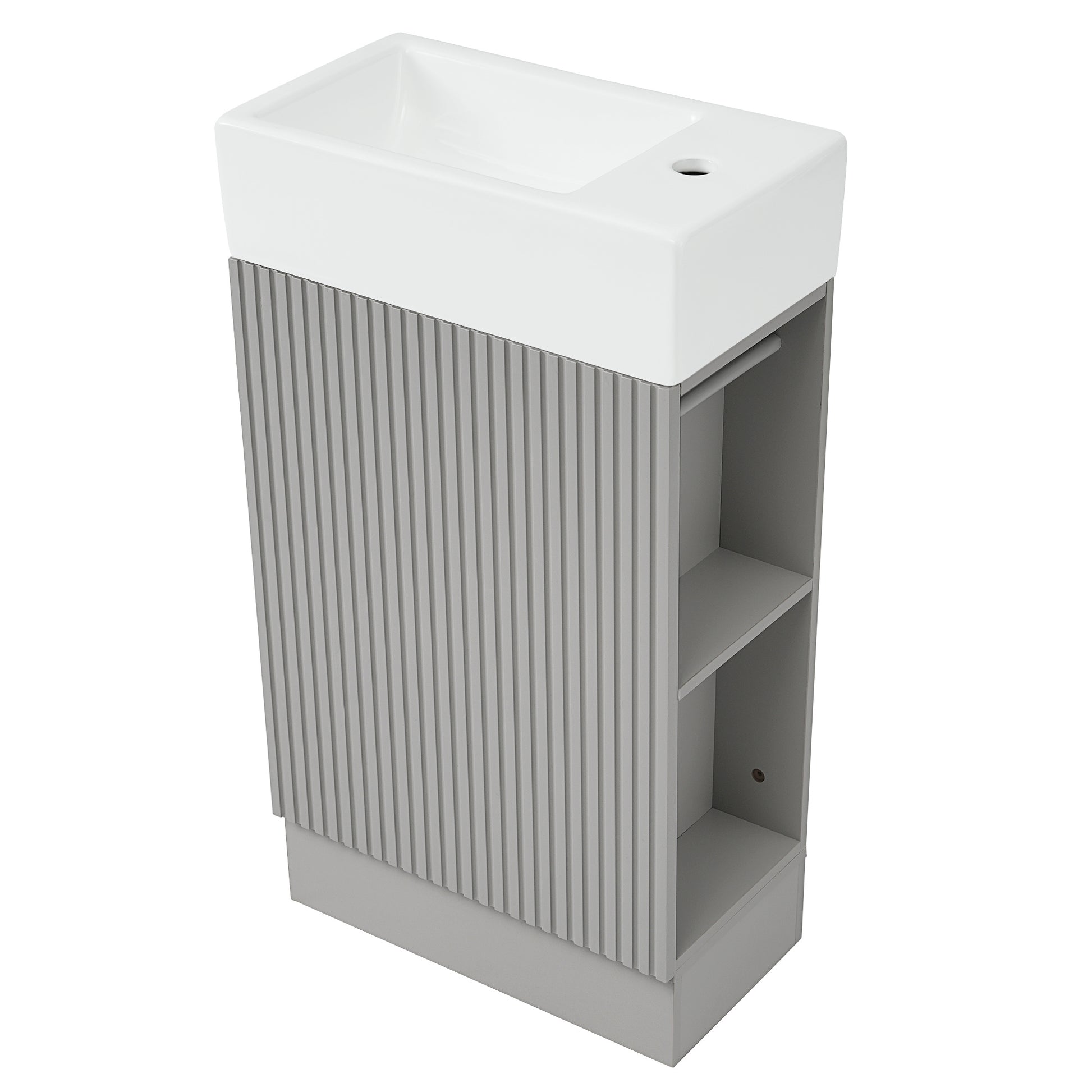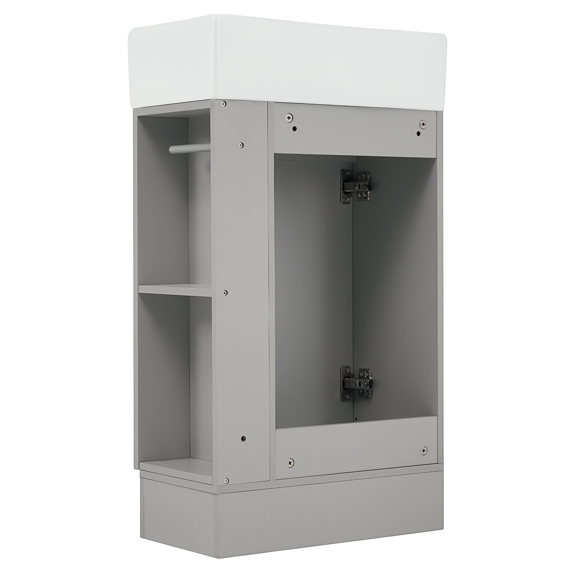 Vanity with Cabinet & Toilet Paper Holder & Shelf - This bathroom vanity has different storage space: one cabinet with door, two-tier storage shelf on the side, and toilet paper holder. You can put soaps, towels, shampoos, tissue paper and other bathroom essentials in it.