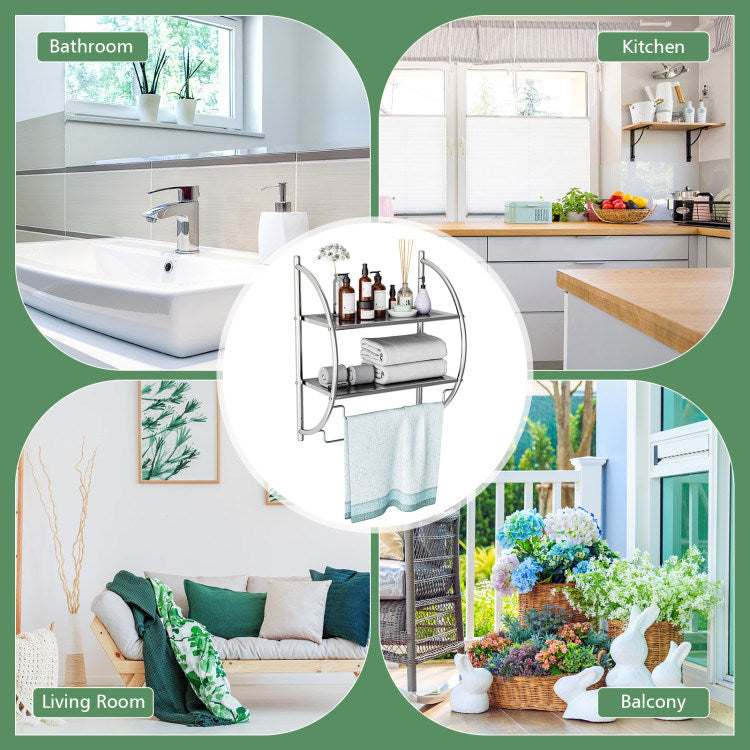 Simple and Stylish: The wall-mounted 2-tier shelf has a simple and stylish design, the chrome-plated iron material is full of metal texture. It is conveniently store your wash products and dry the towels, meanwhile adding a modern feeling to your bathroom or laundry room. It is an ideal option for you.