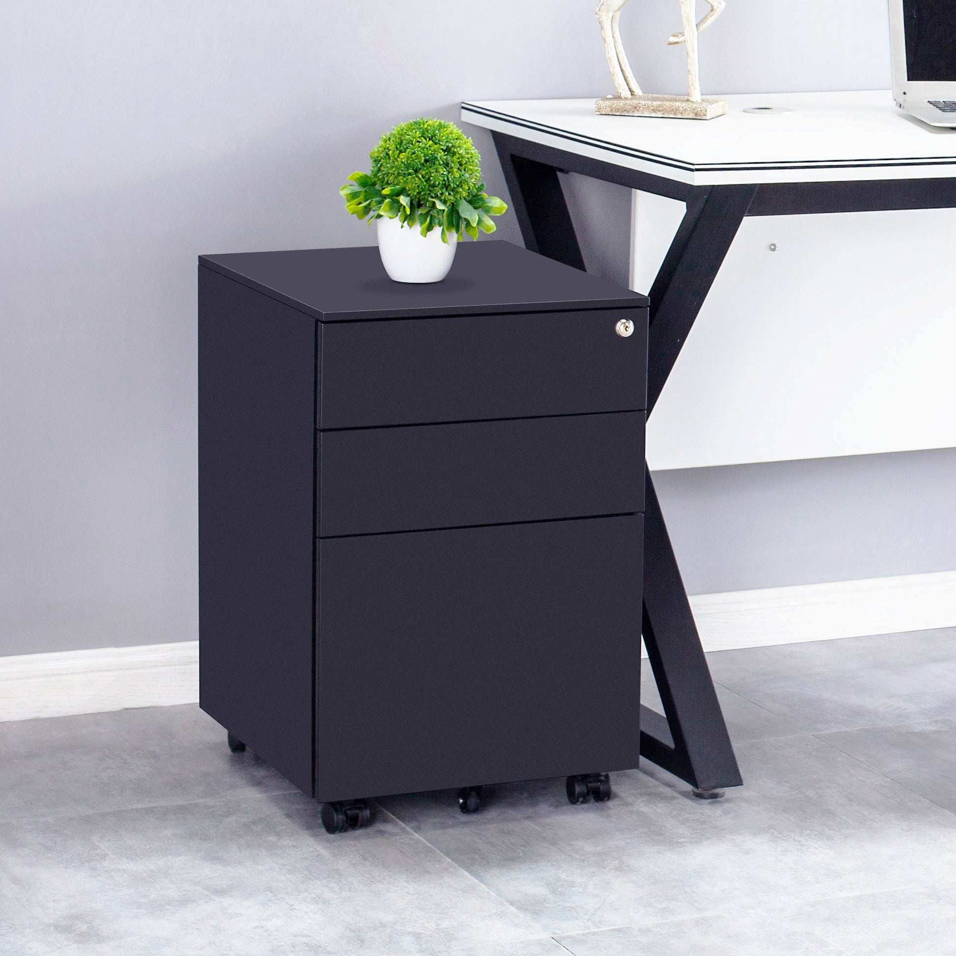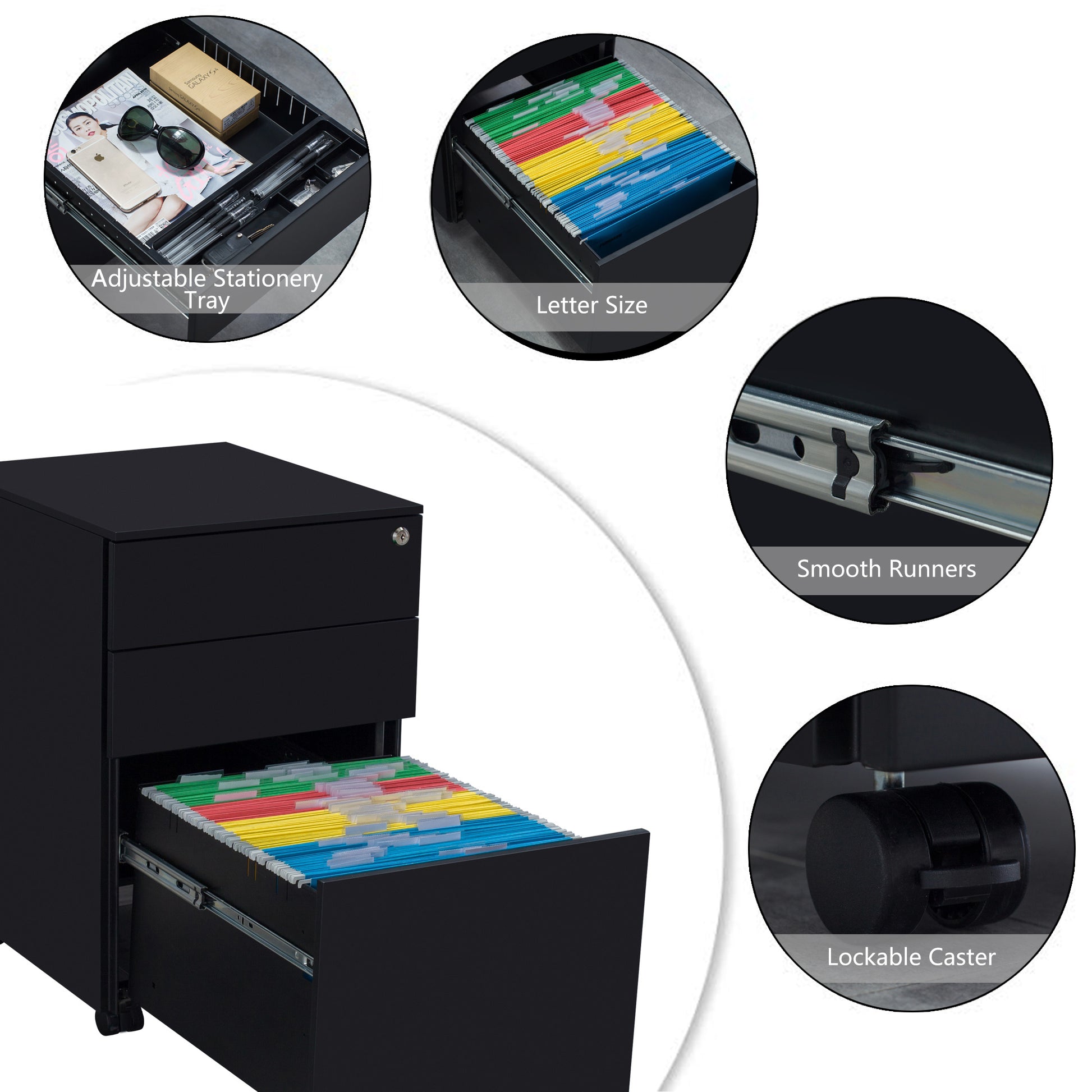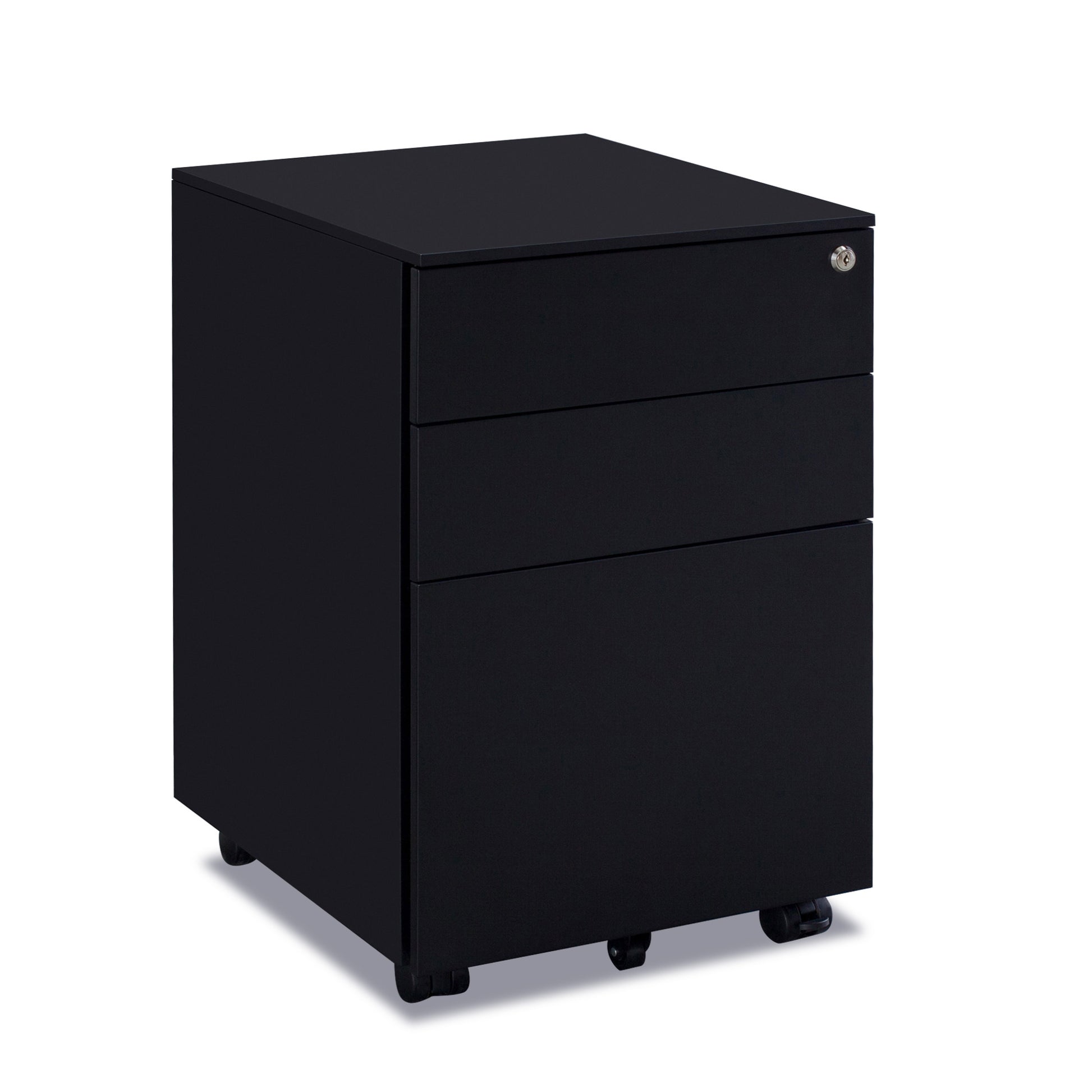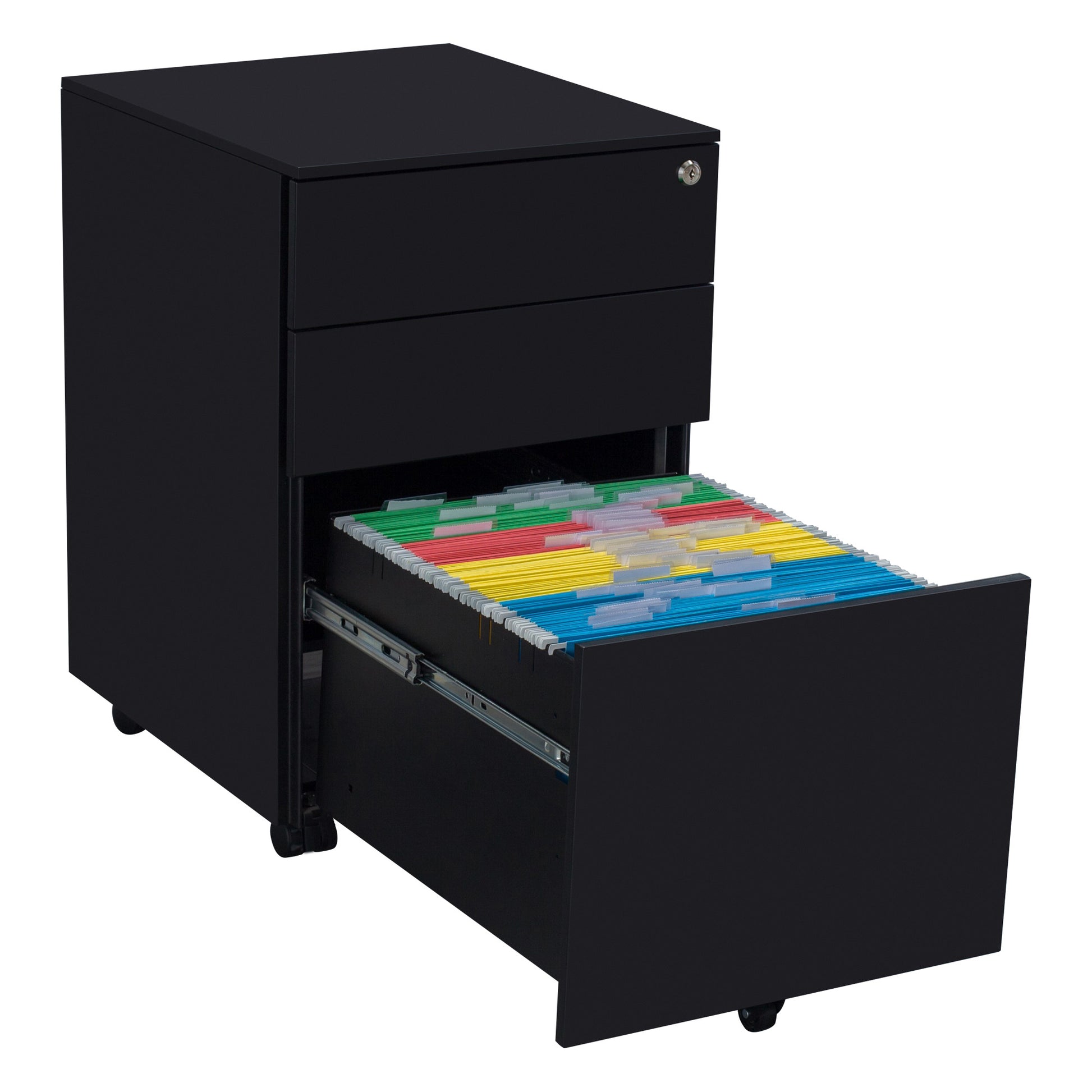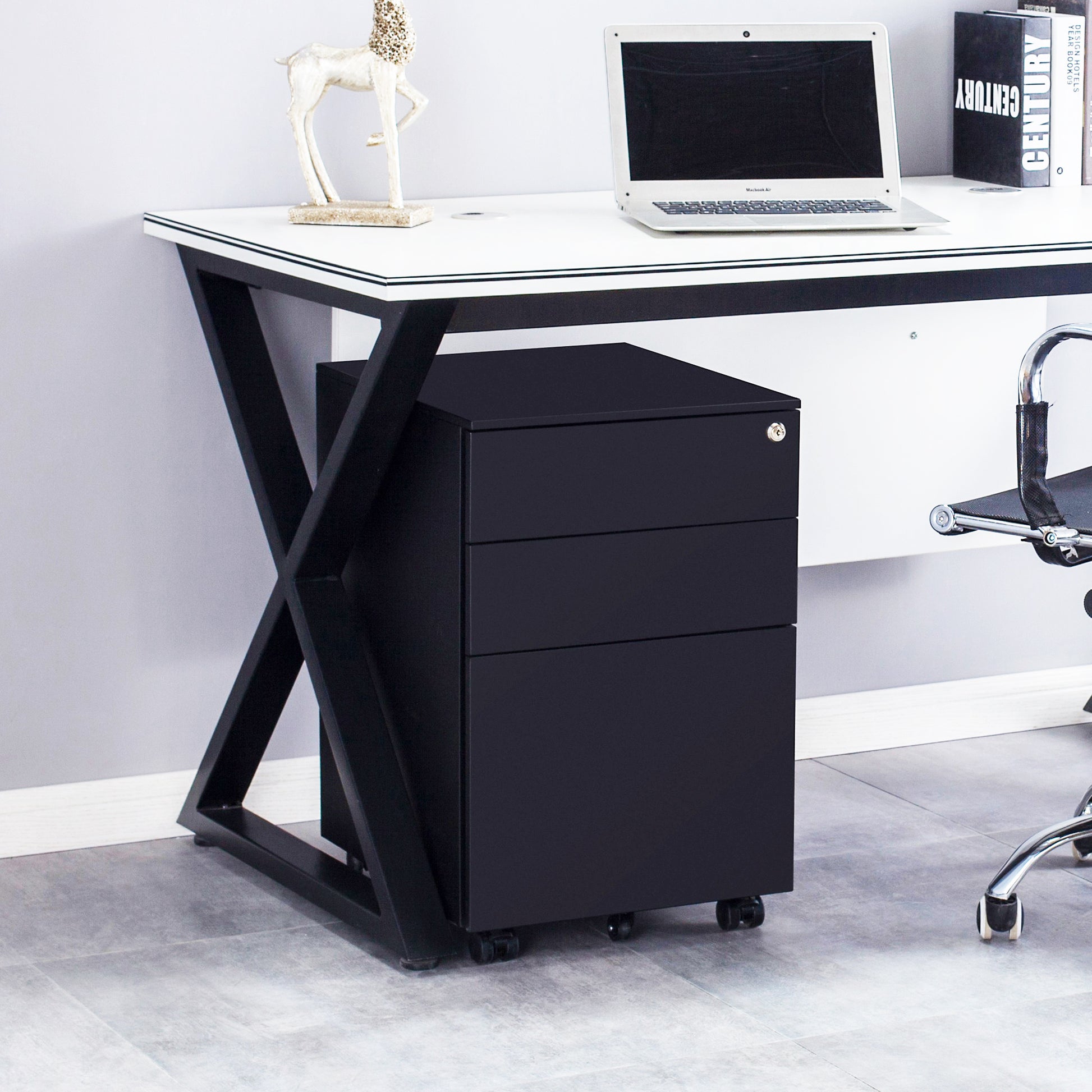 HISTEEL Movable 3 Drawers Metal File Cabinet Lockable Pedestal Files Fully Assembled Except for 5 Cactors