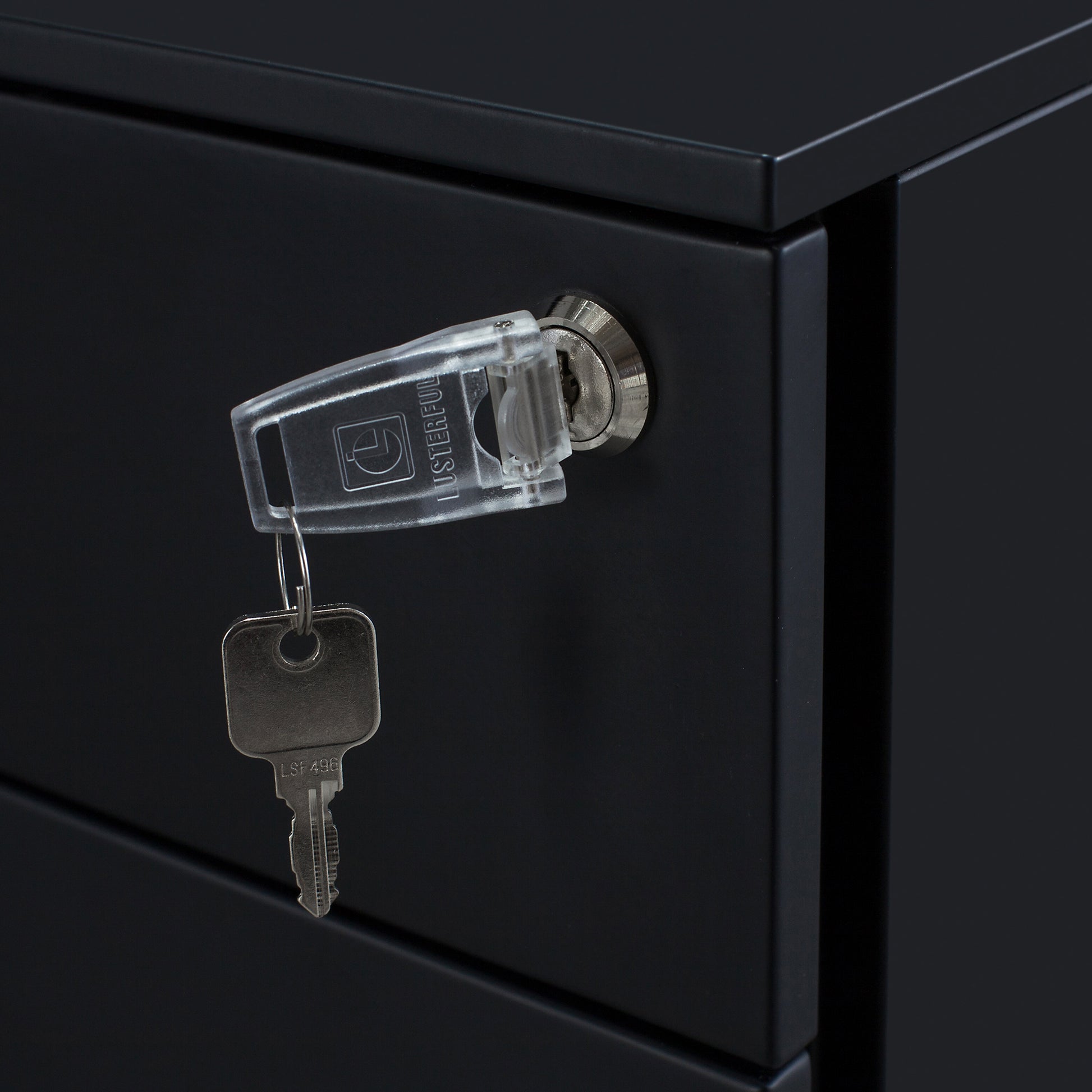 8. Interlock System of LUSTERFUL Brand. One lock with 2 keys for all 3 drawers.