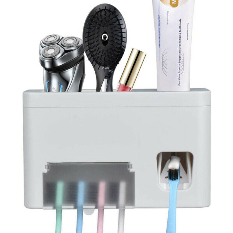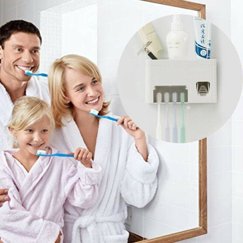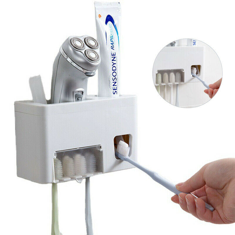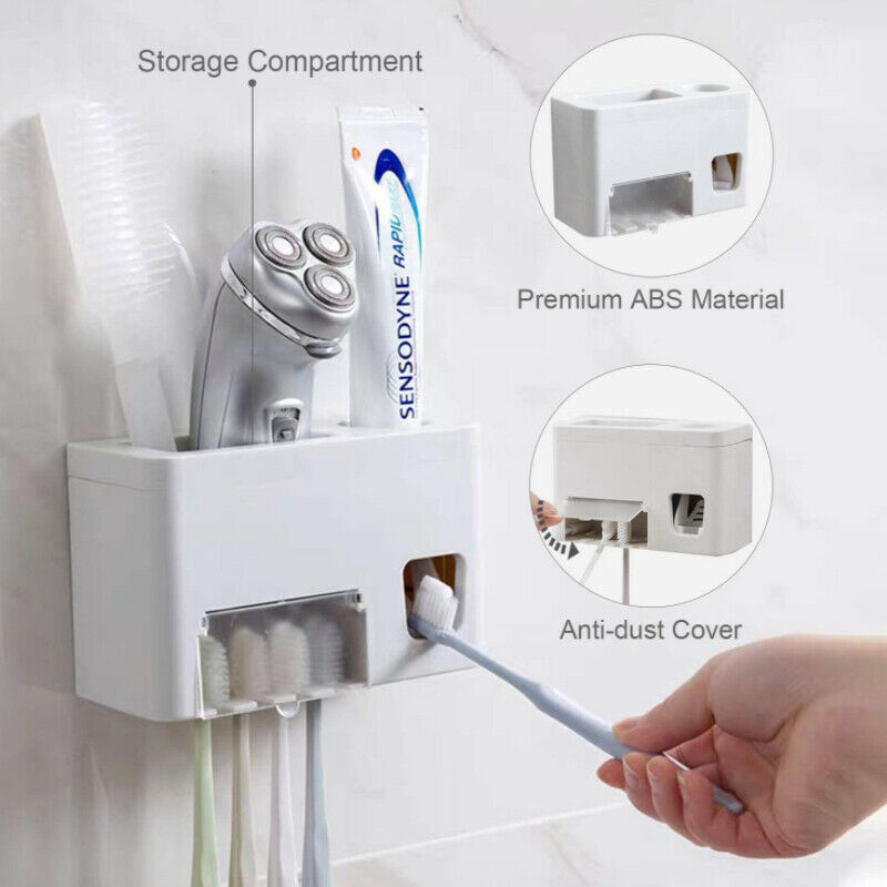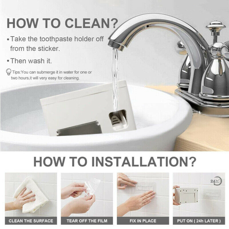 MATERIAL AND HYGIENIC:This Toothpaste Dispenser and Toothpaste Squeezer Kit is using the Food Grade ABS plastic which is reliable,durable and harmless to toothpaste tube,Dust proof toothbrushes holder with flip cover design, Anti-bacterial and Easy to clean