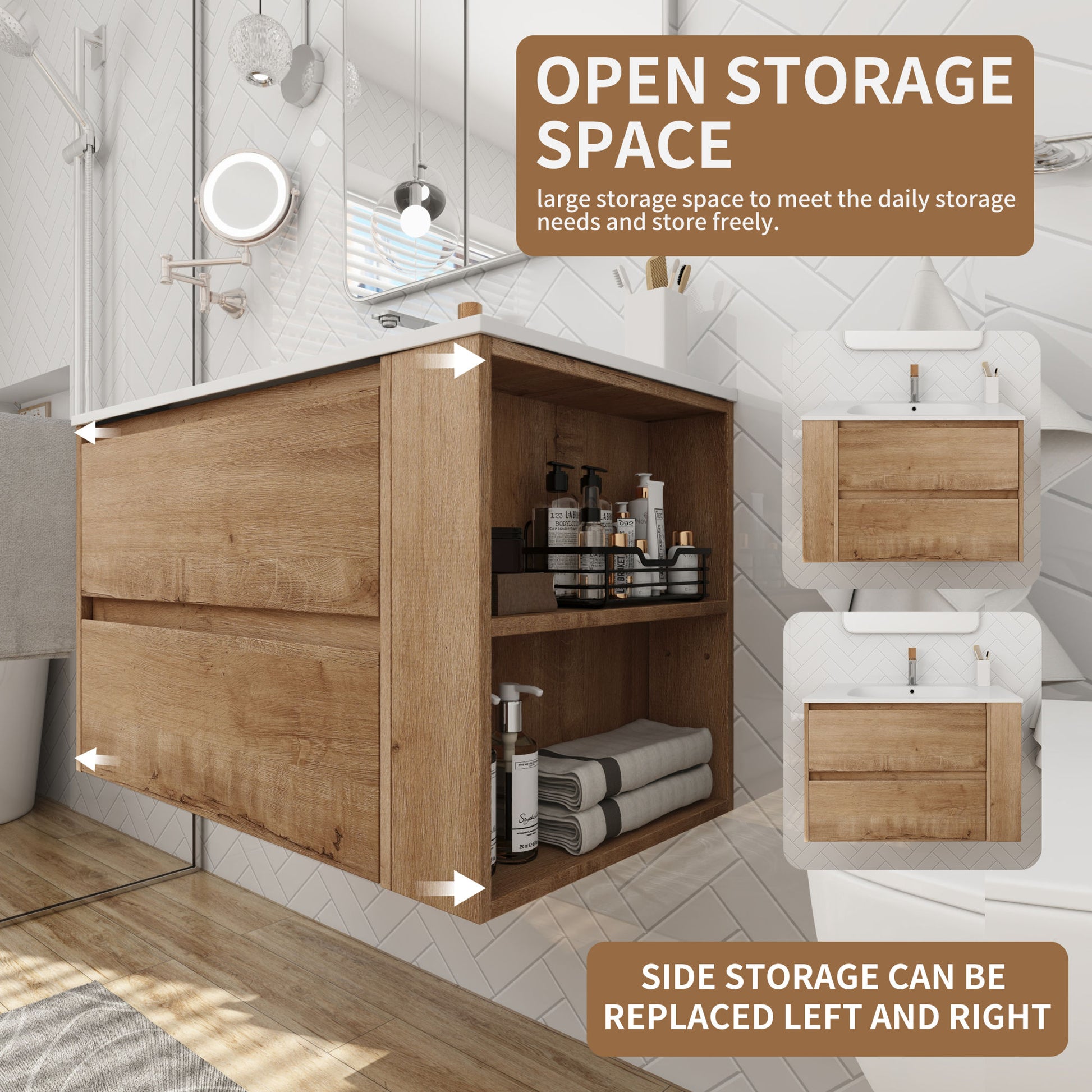 Unique Design: The adjustable shelves on the side of the double drawer bathroom cabinet provide a lot of extra space for the cabinet. The rack can be installed on the right or left side according to the needs of the bathroom.