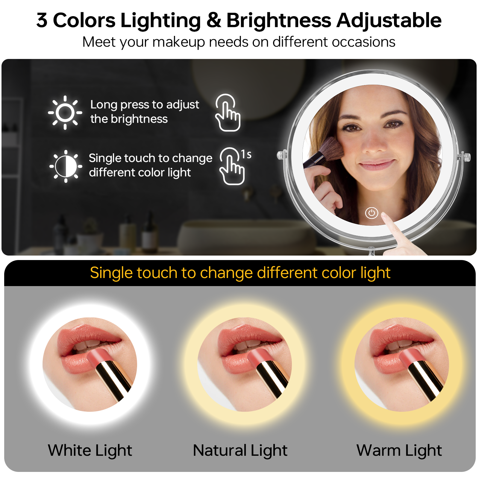 Rechargeable Vanity Mirror with Smart Touch Screen Switch