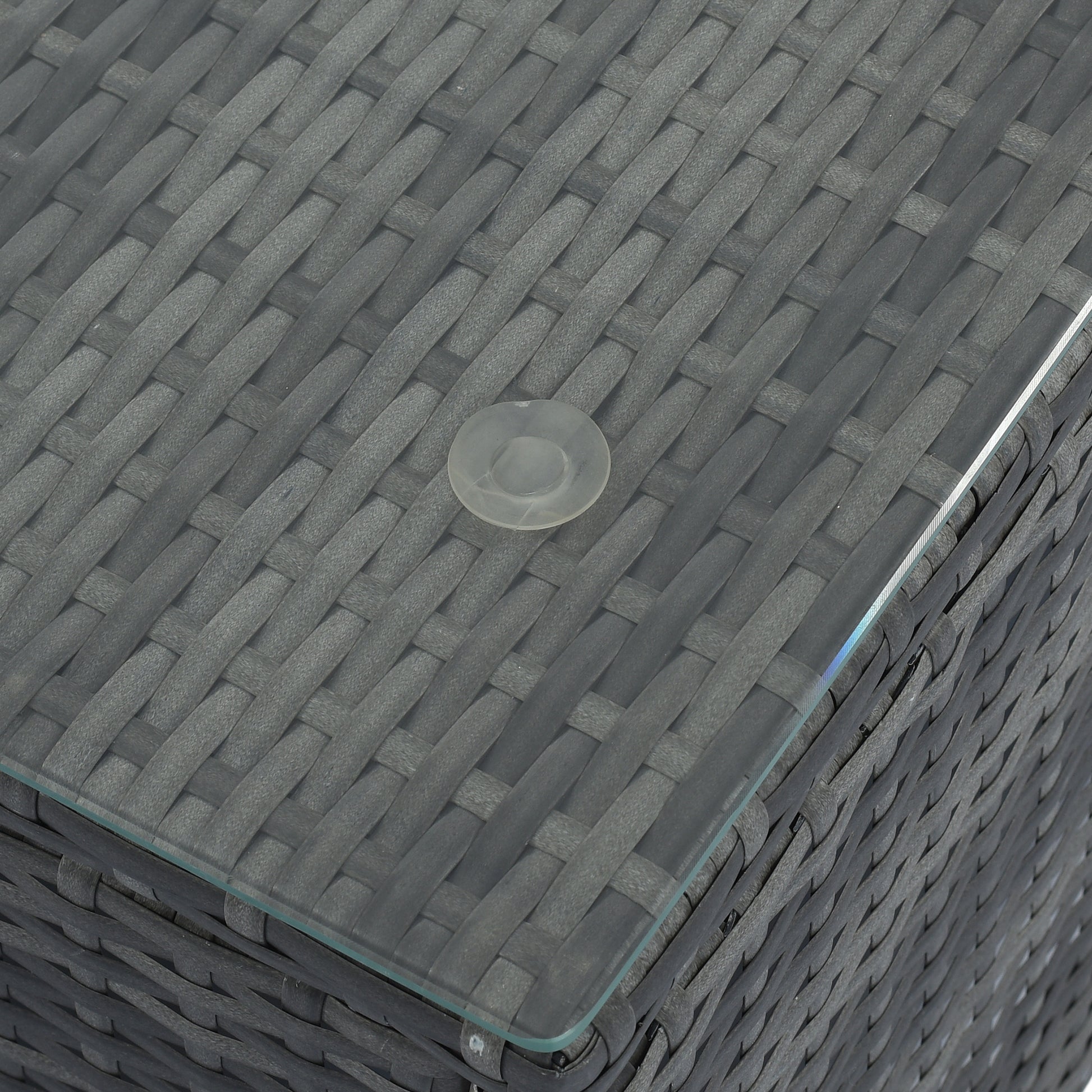 Those cushions are made of Sun Umbrella fabric that is waterproof, UV-proof and corrosion-proof for many years to use. The tempered glass is connected to the wicker table top through suction cups, which is very safe and stable. They only need a rag to keep them clean and tidy. While those pillows ar