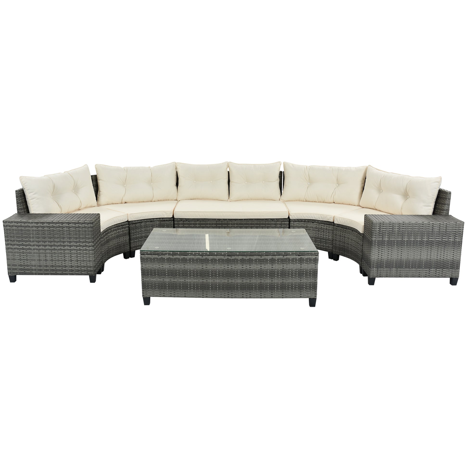 Notice: Gray wicker and Gray cushion would present different colors when they are in different lights, for instance, cushions and rattan comes in different colors indoors and outdoors. The colors in the picture are for reference only.