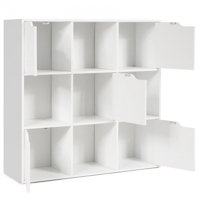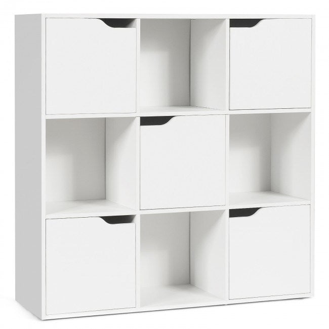9-Cube Organizer with Doors: The 3-tier bookcase consists of 9 large cubbies. It combines enclose cabinets with open cubbies, this storage shelf meets storage and display needs as well as keep your room neat and tidy.