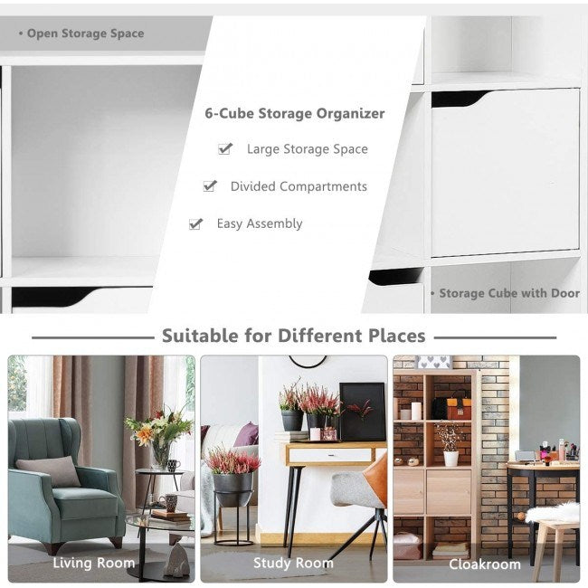 Combine open storage cubes with enclosed storage cubes; so it is multifunctional and versatile to meet your needs. Most importantly; the 6-cube storage cabinet can make the most use of your limited space and provide ample storage and display space for your books; toys; potted plants and decorations. Featuring clean lines and modern style; this beautiful and practical furniture is the perfect addition to your bedroom; living room; kitchen and office.