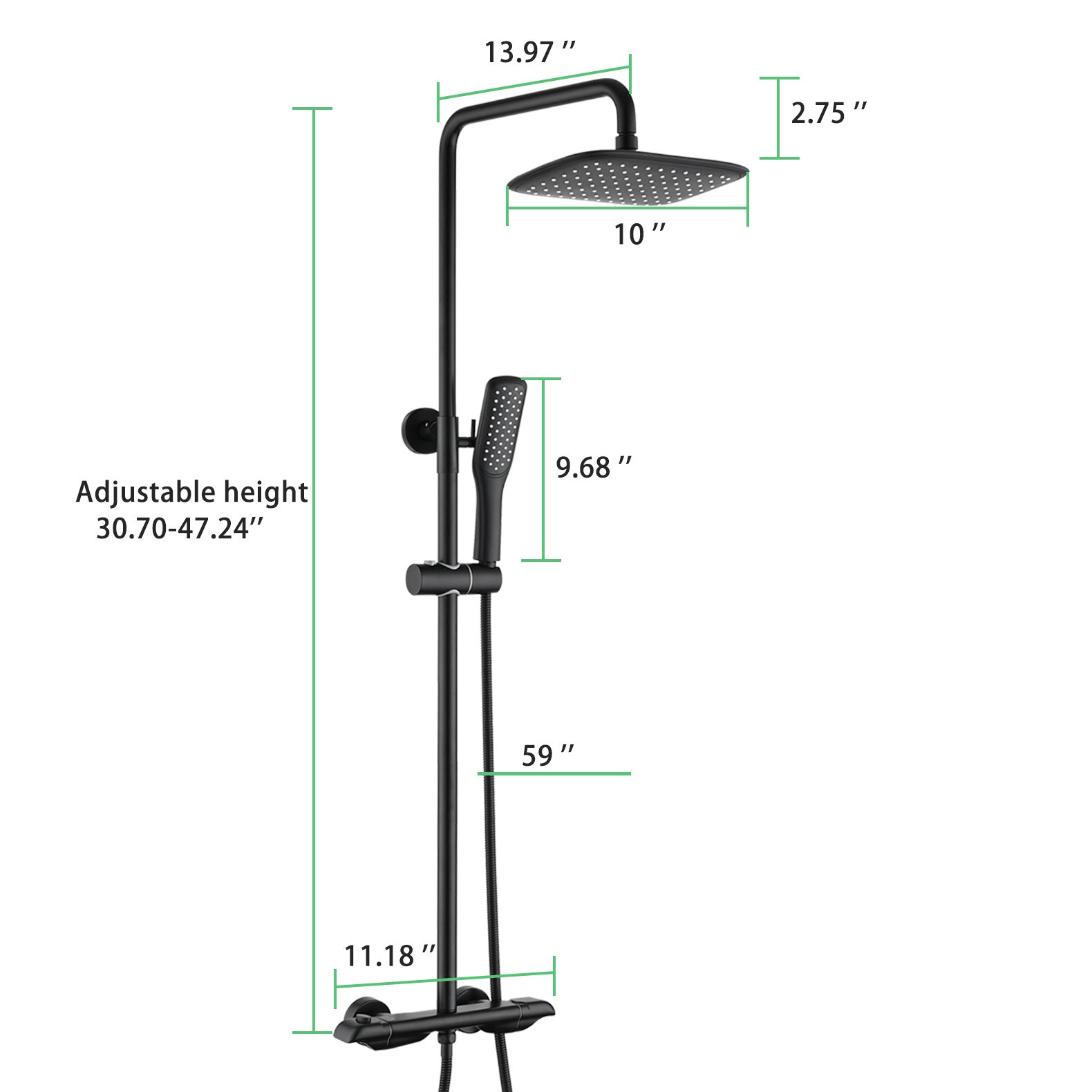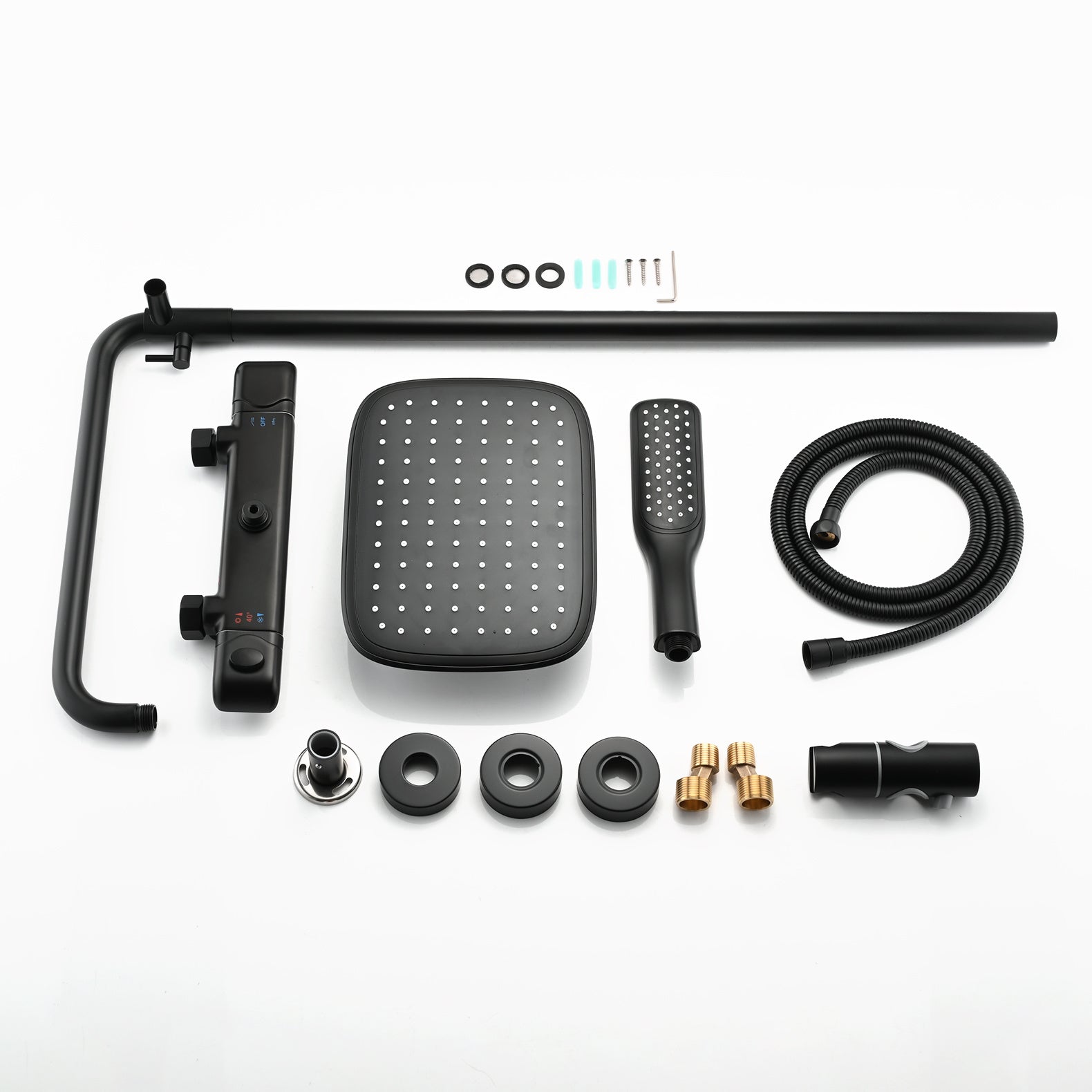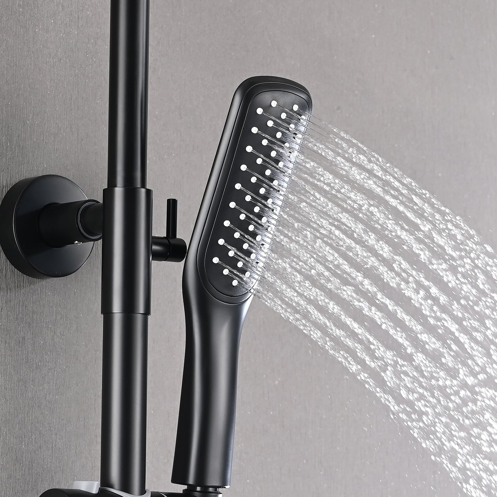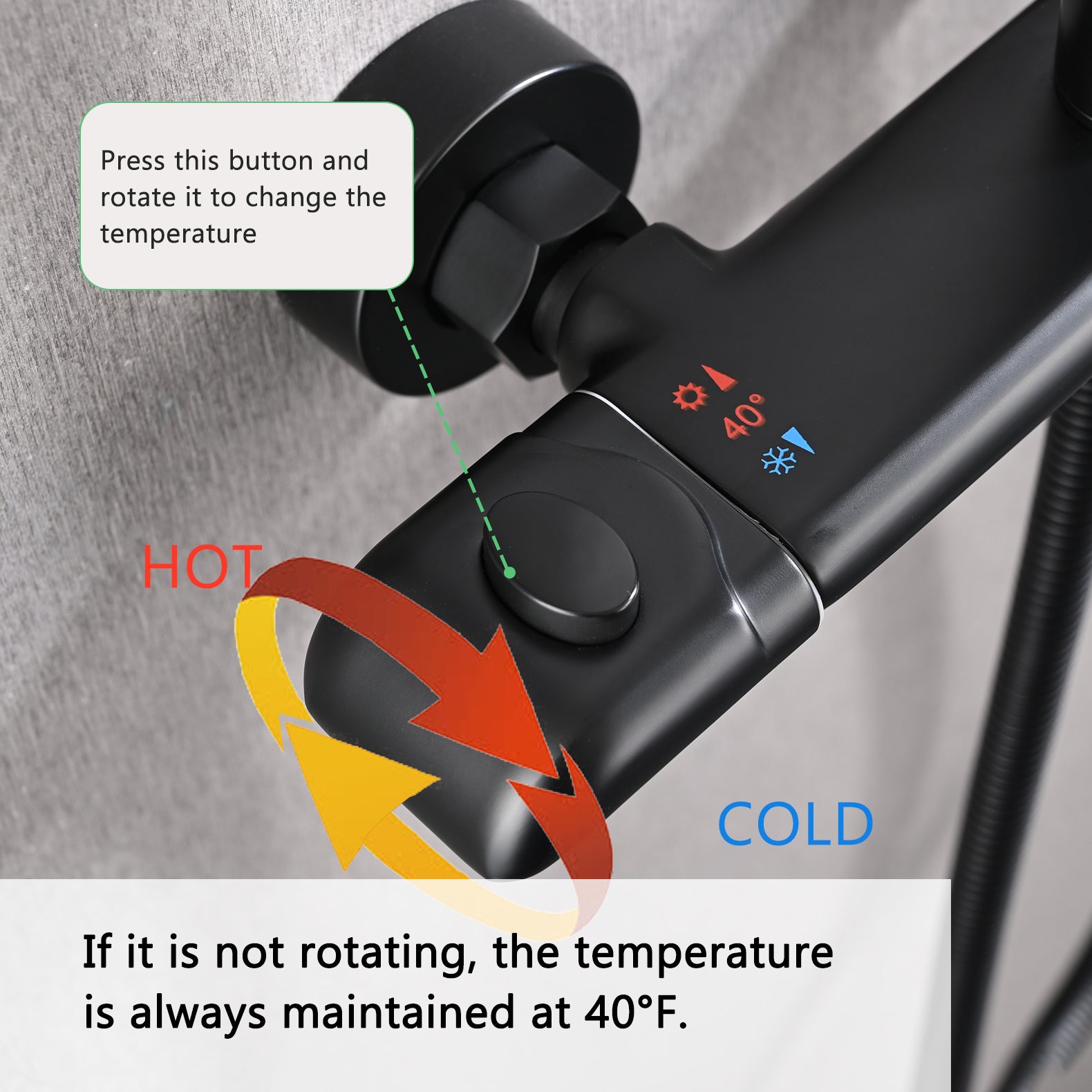 This shower has two functions: constant temperature system overhead rain shower and hand-held shower head, so that people have a pleasant bath effect.