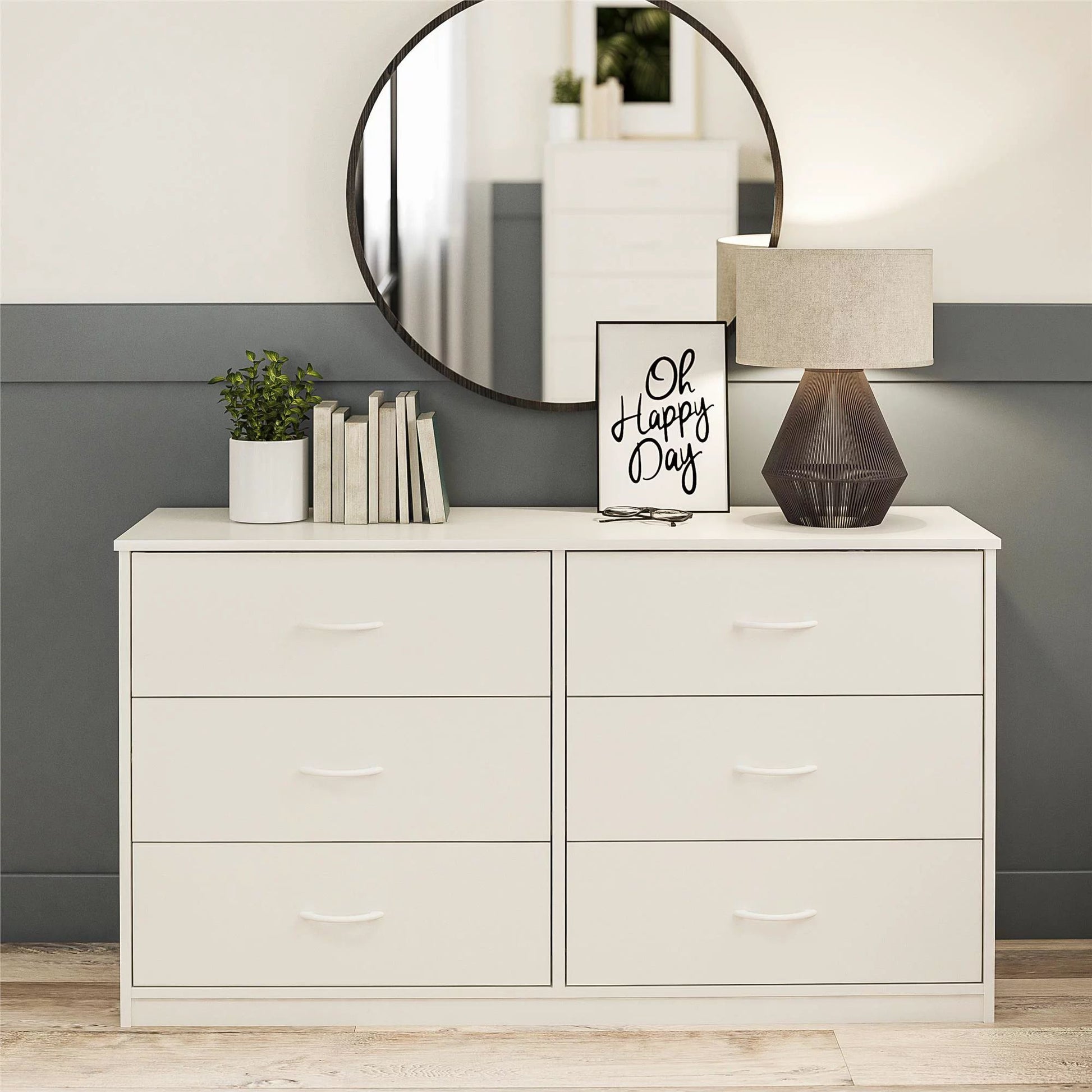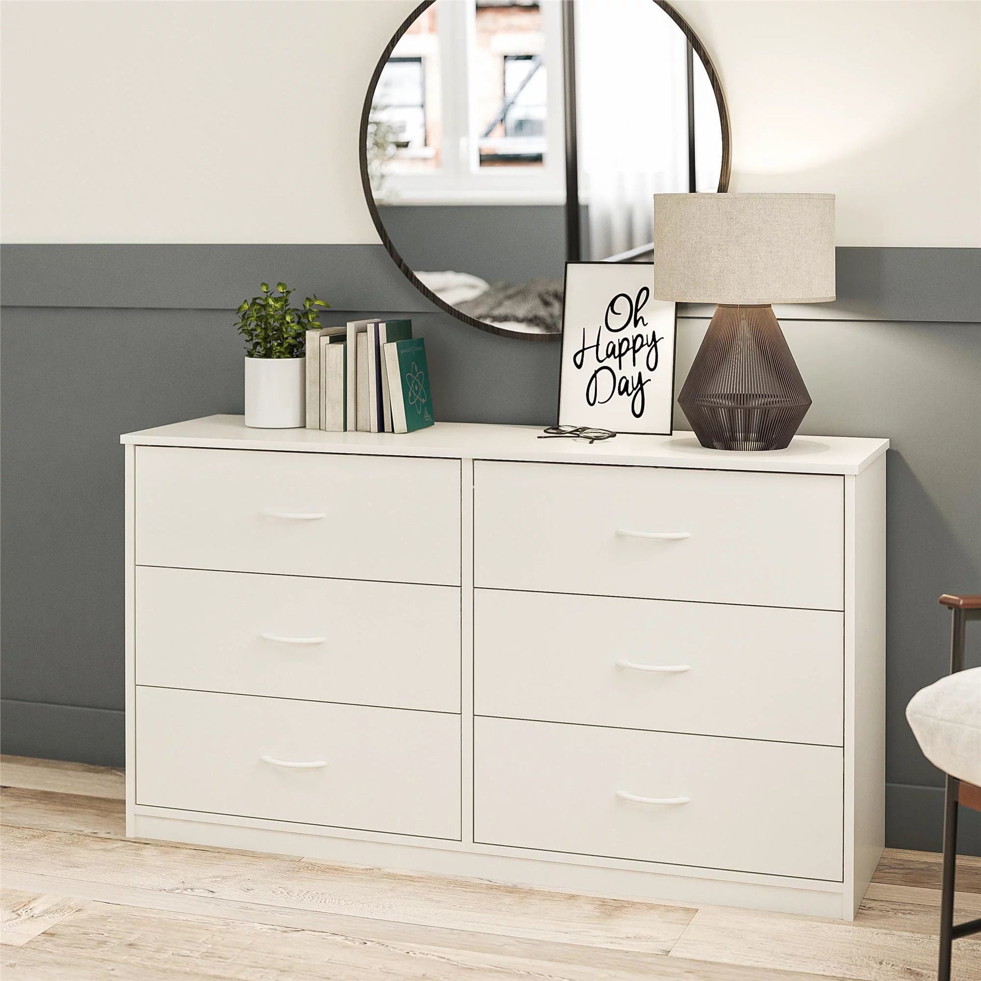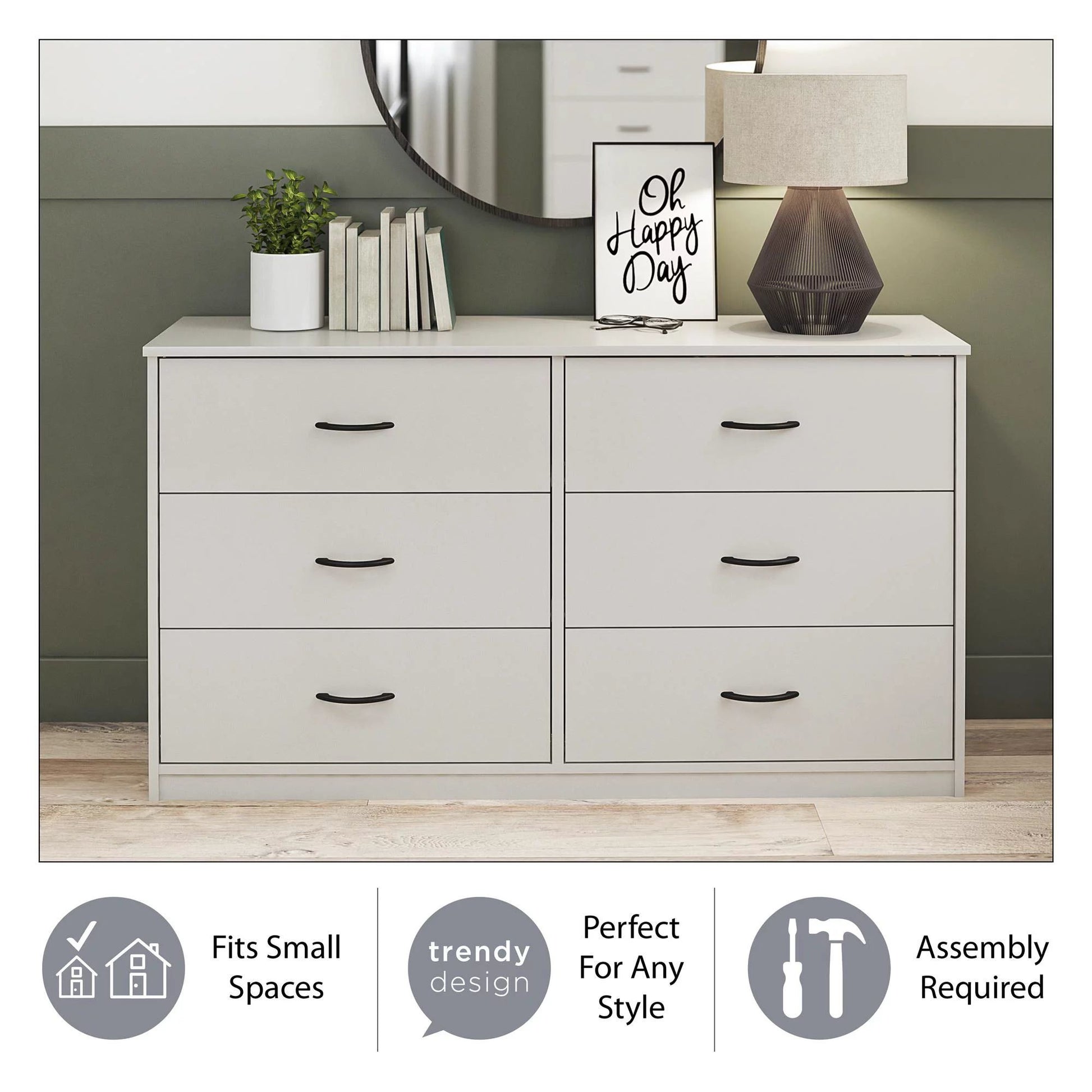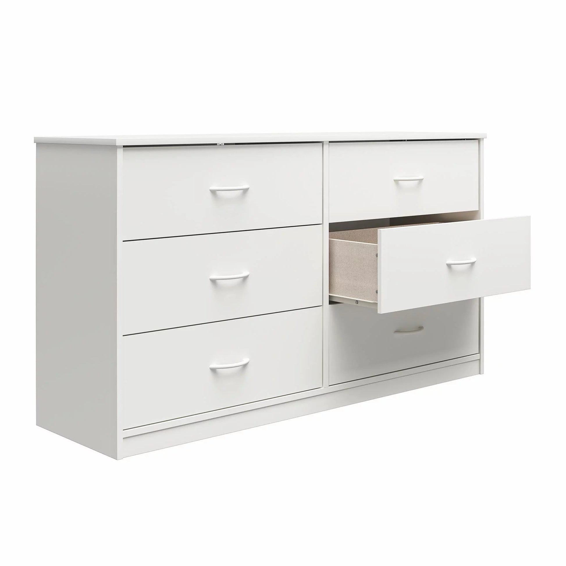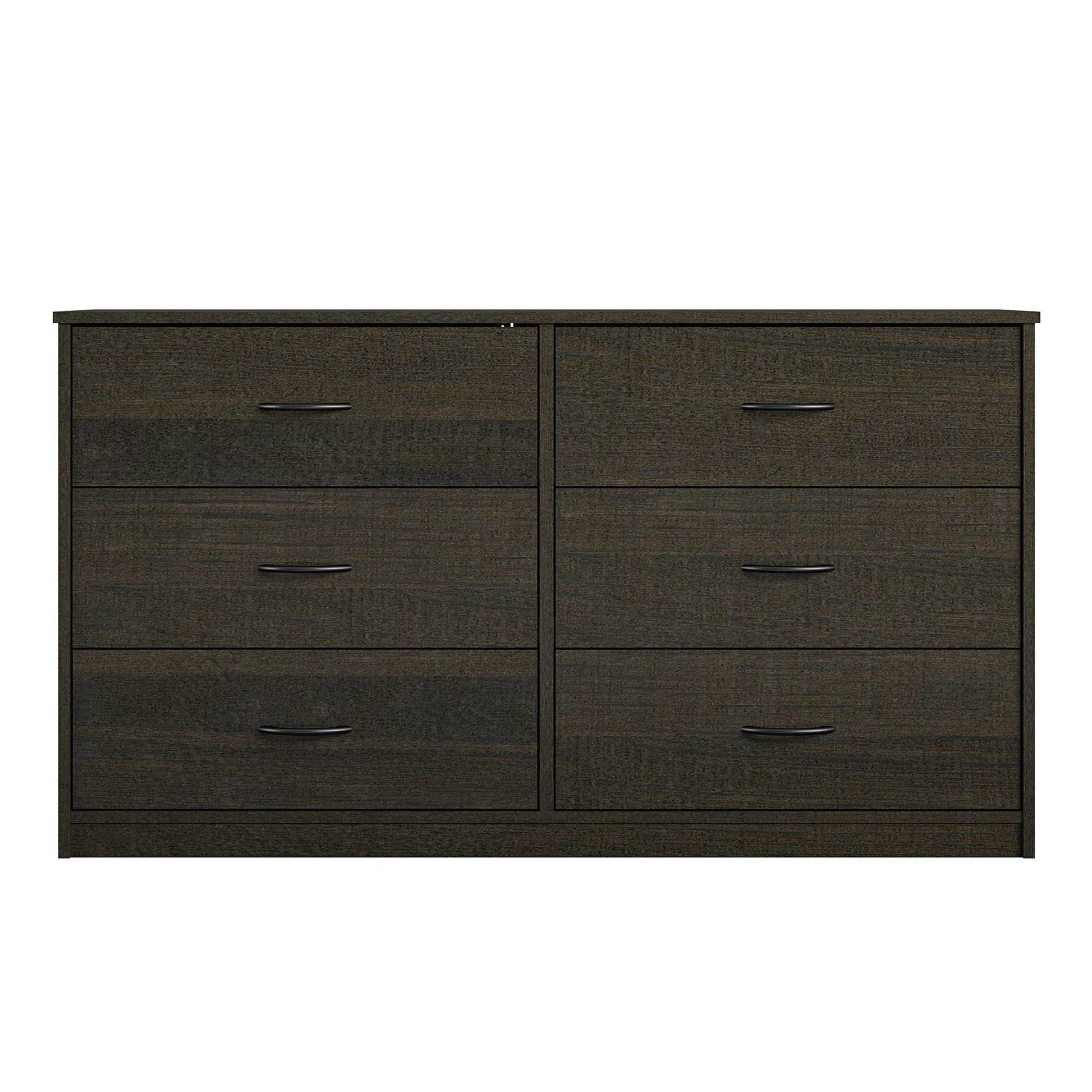 Store folded t-shirts, pants and extra linens in the 6 roomy drawers and display photos and decorations on the roomy top side, wall anchor kit included to securely attach the dresser to the wall