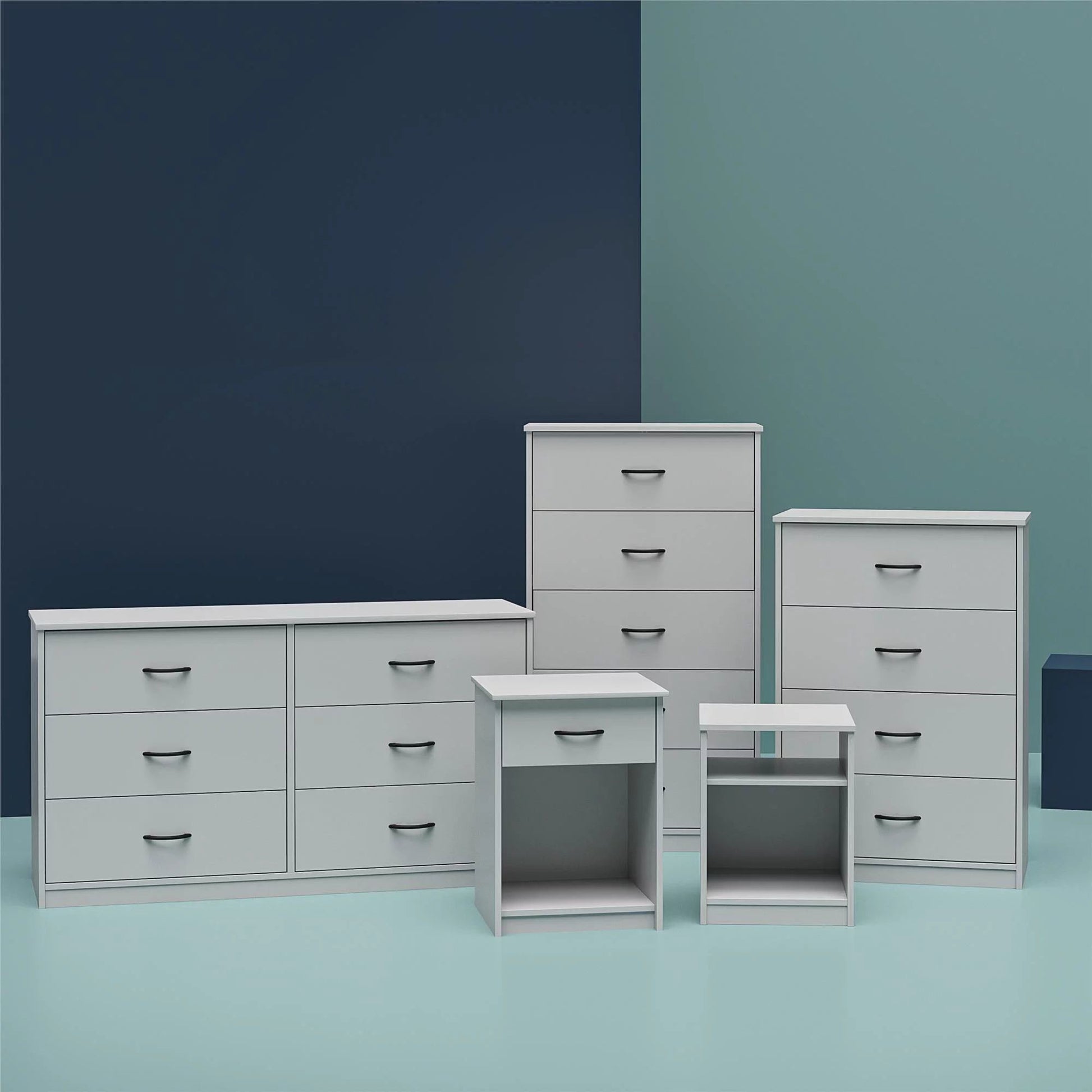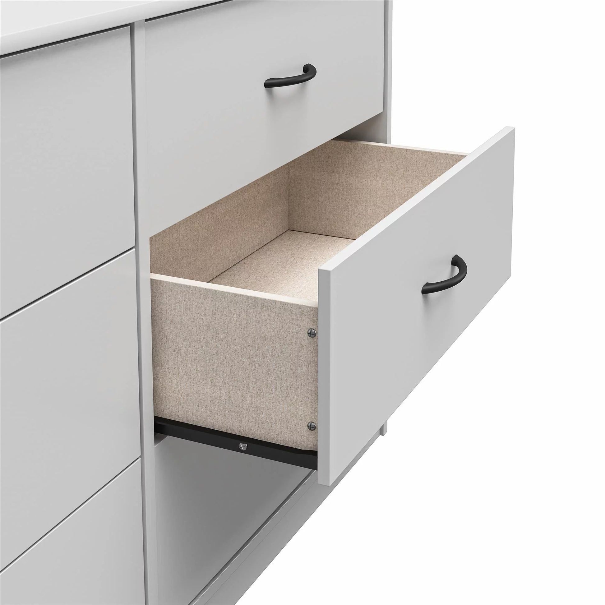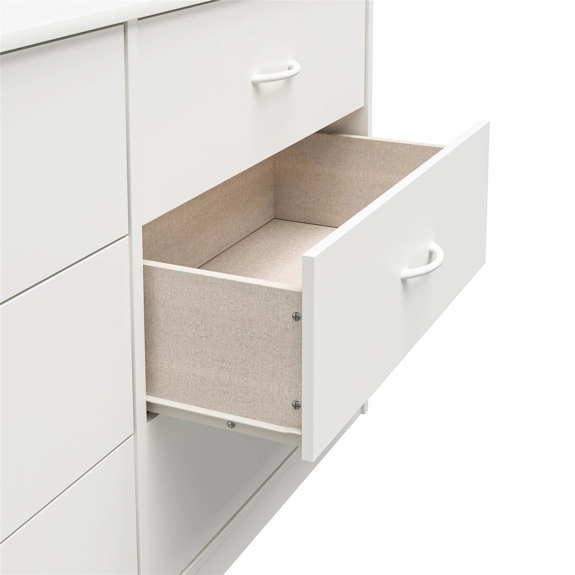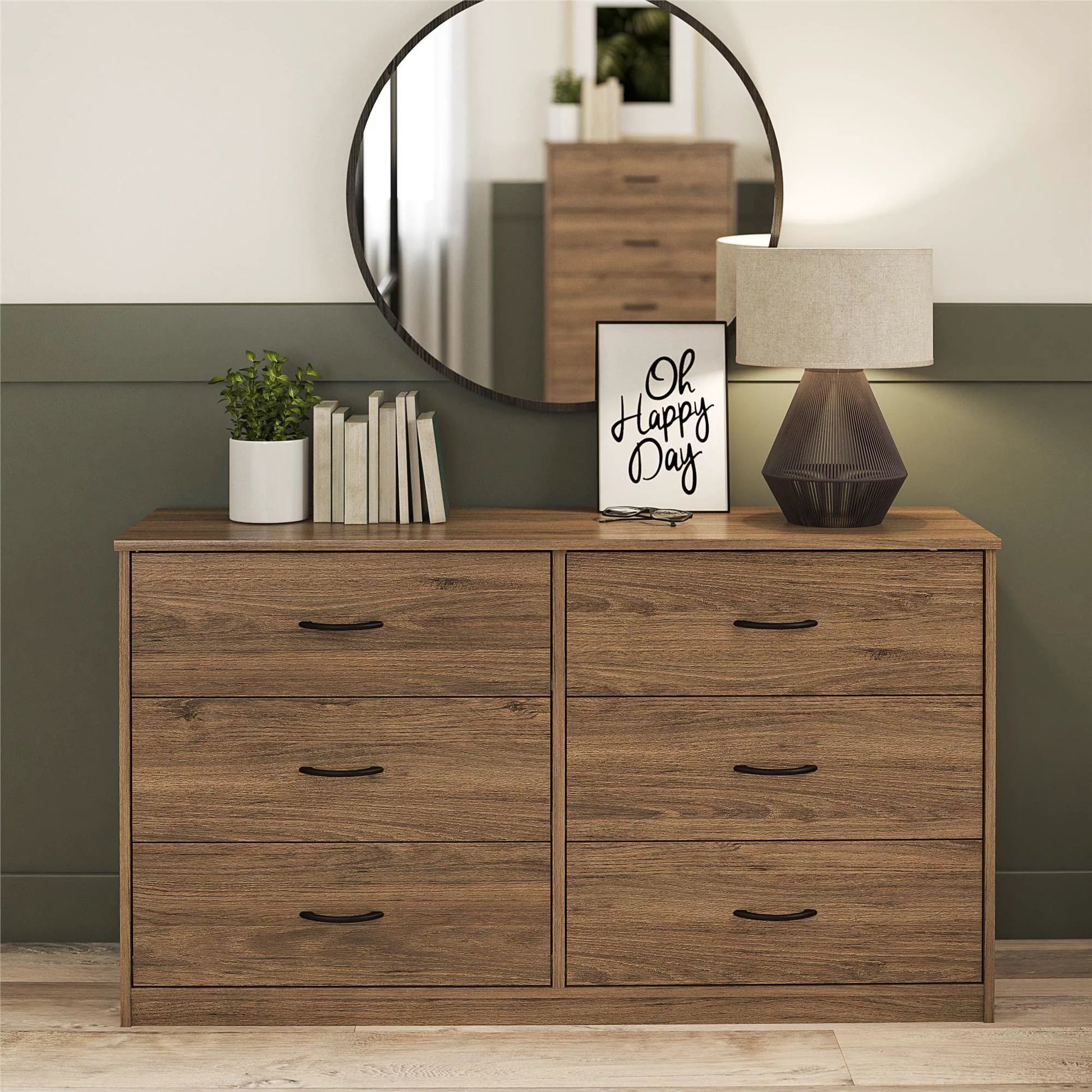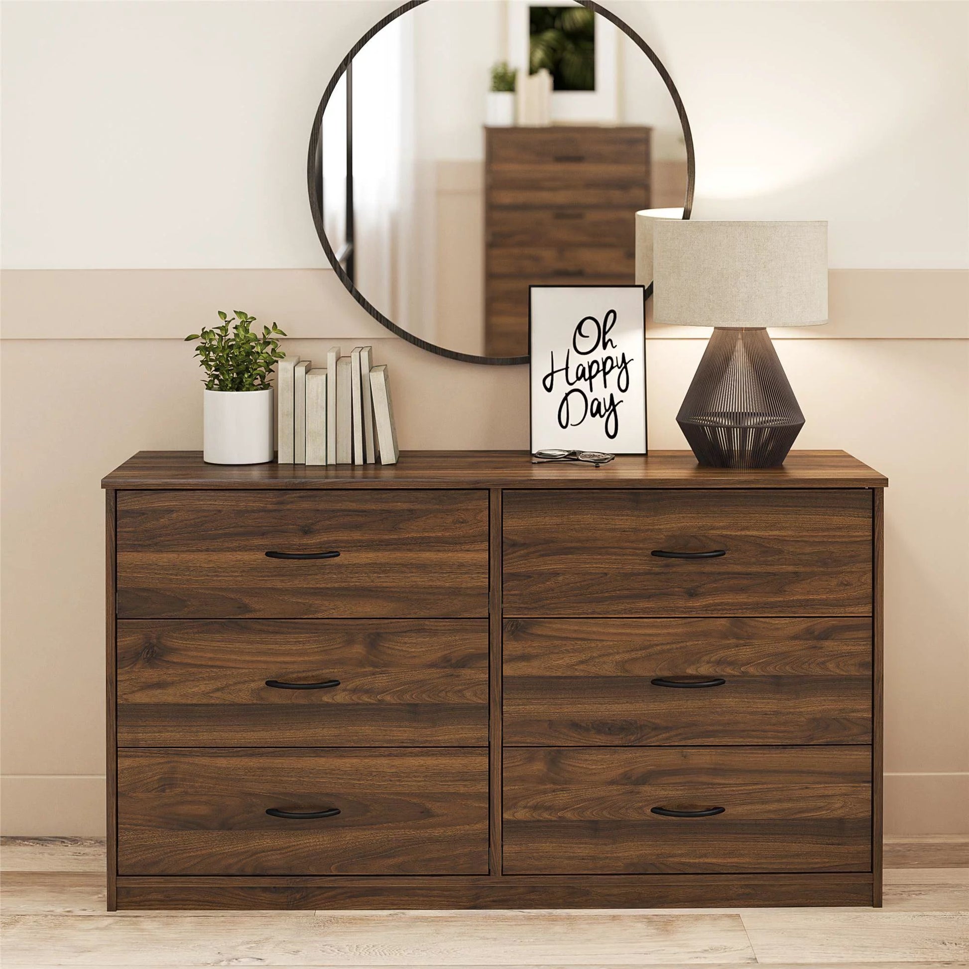 Store folded t-shirts, pants and extra linens in the 6 roomy drawers and display photos and decorations on the roomy top side, wall anchor kit included to securely attach the dresser to the wall