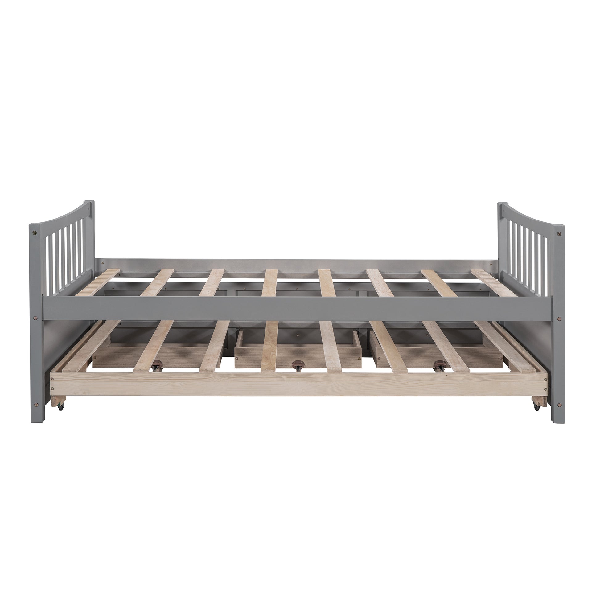 [Maximized space] The daybed with handy pull-out trundle and three functioning drawers takes up minimal space for the spontaneous sleepover guest. The trundle and drawers can easily be pulled in and out for maximum storage space, perfect for organizing anything from clothes and bed linens to toys and games. Such a versatile piece, bringing functionality, versatility, and style to your home, perfect for those who have lots of visitors.