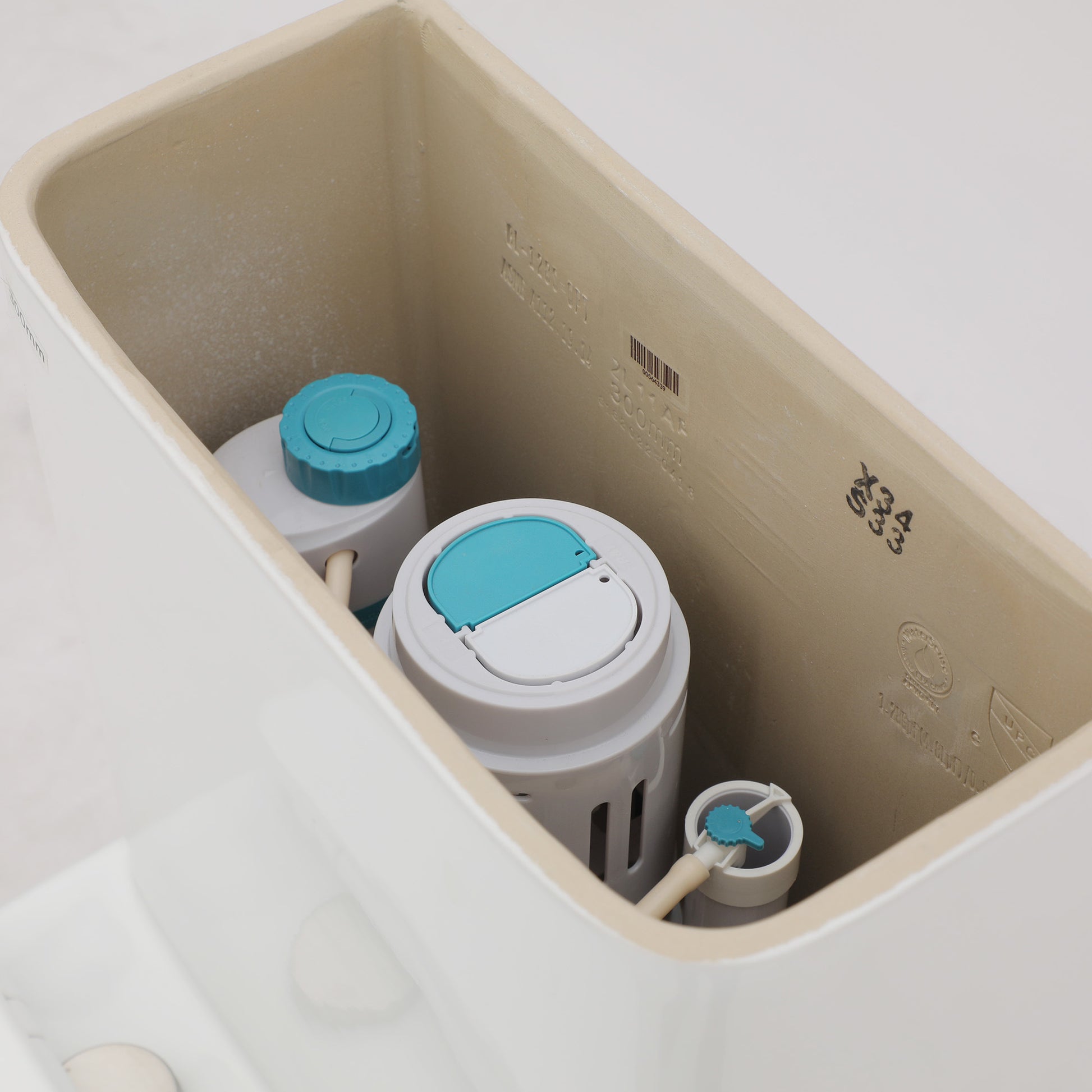 Top flush toilets have a displacement of 1.6/1.1 gallons per flush.