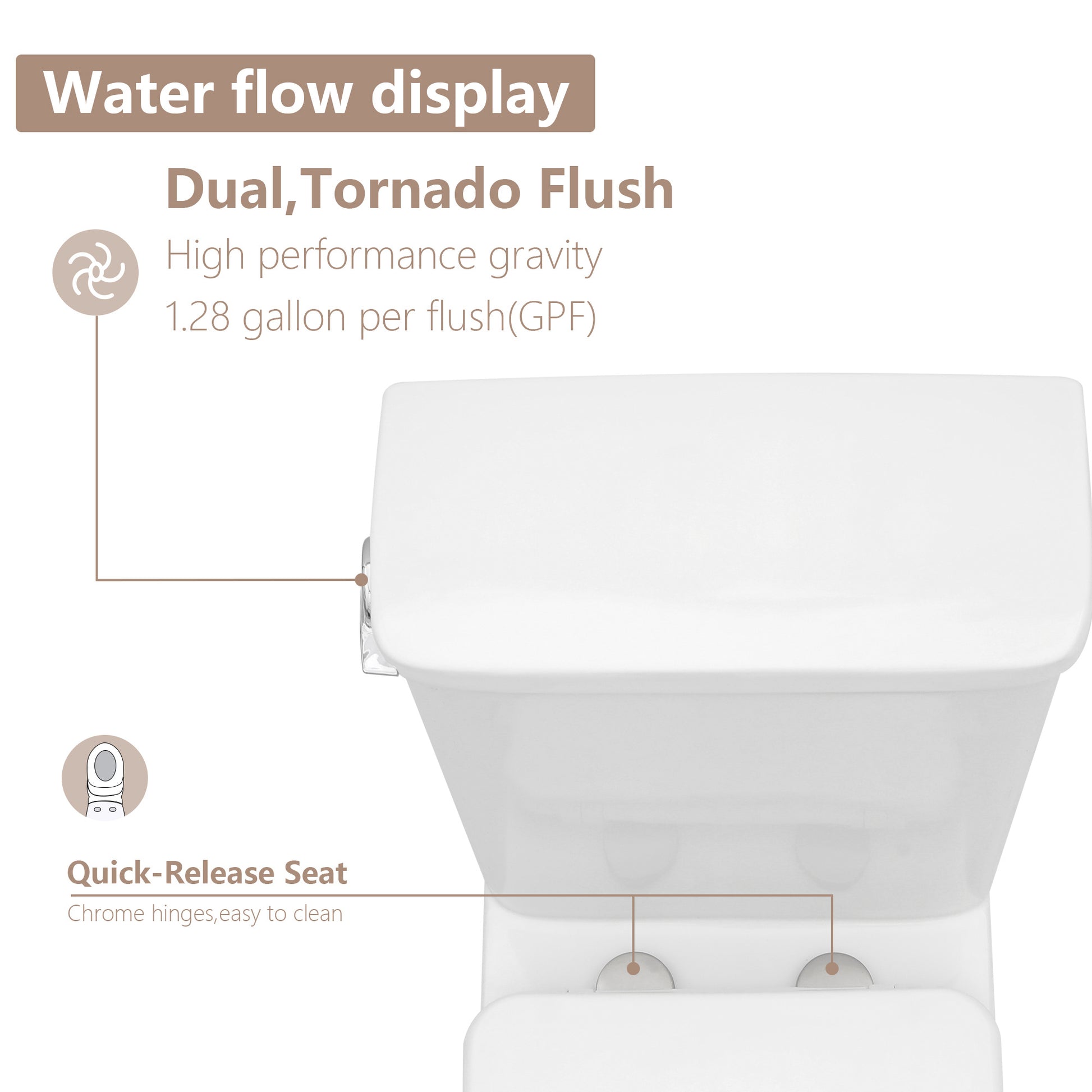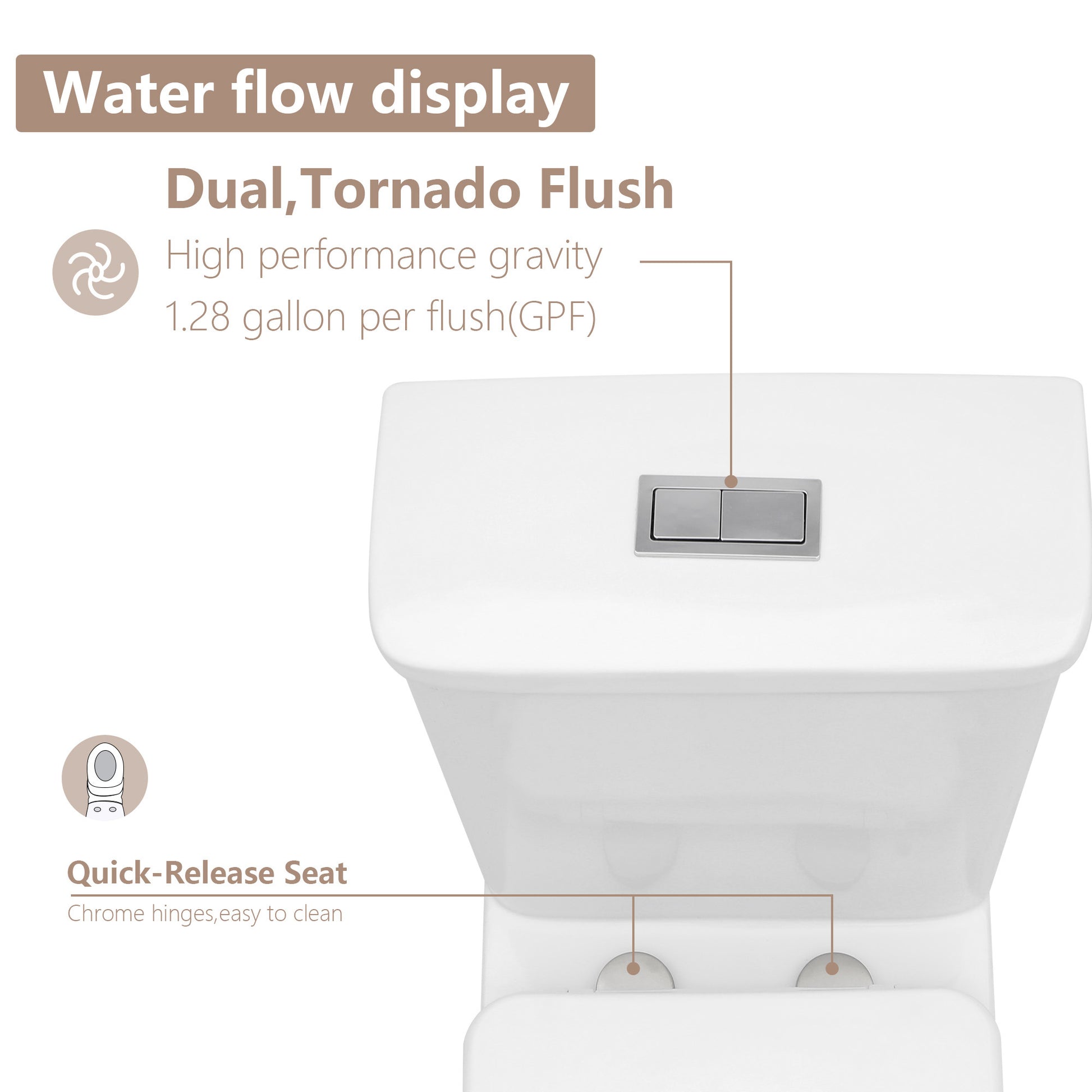 Choose between two flushing options - a partial flush for liquid waste and a full flush for solid waste. This intelligent water-saving feature promotes sustainability while reducing water consumption and utility costs.