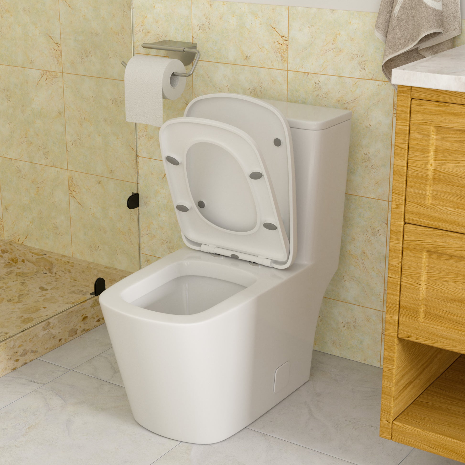 Experience the luxury of a quiet and gentle closing motion with the one piece toilt soft-close seat. No more loud slamming noises or accidental seat crashes. This feature adds a touch of sophistication while prolonging the lifespan of the seat.