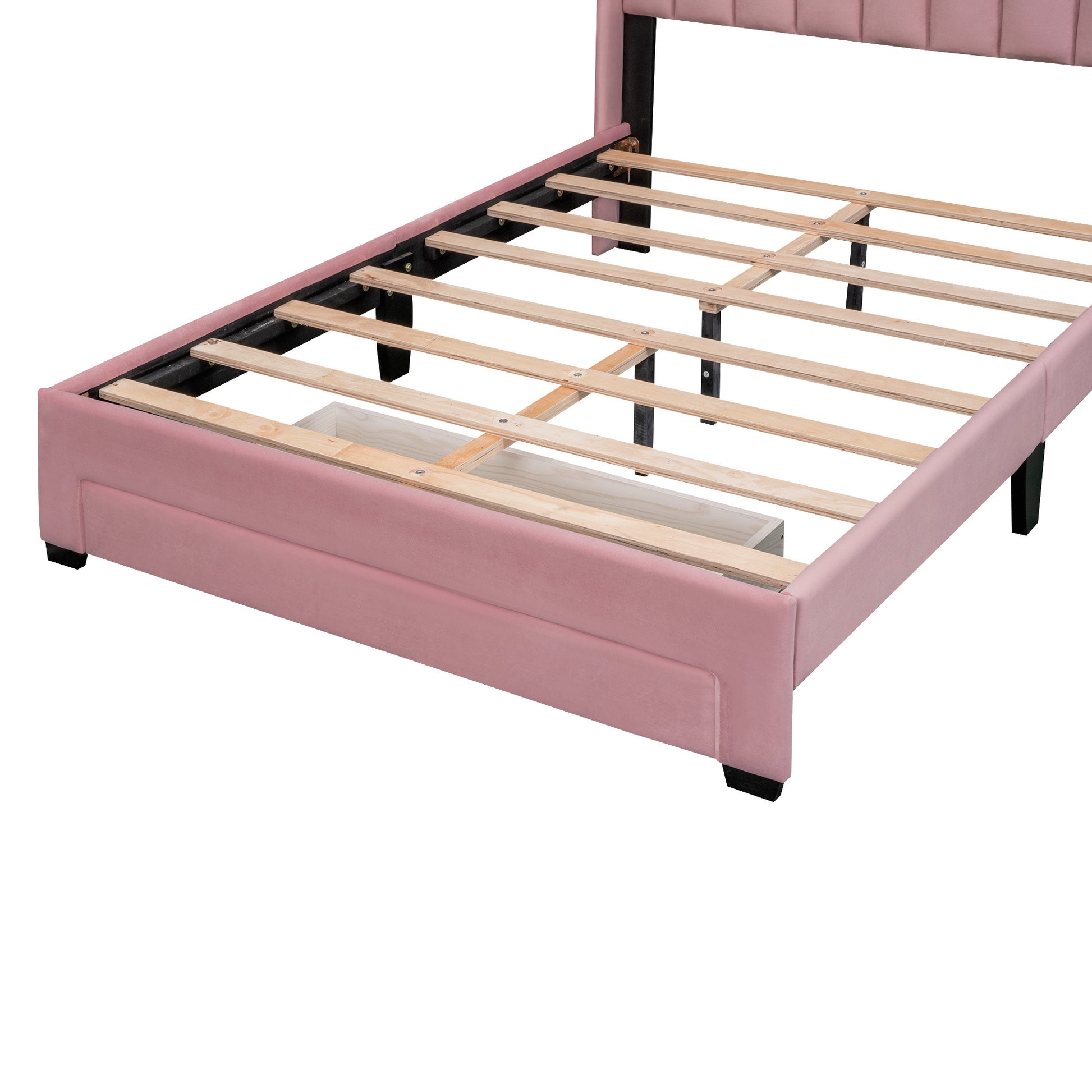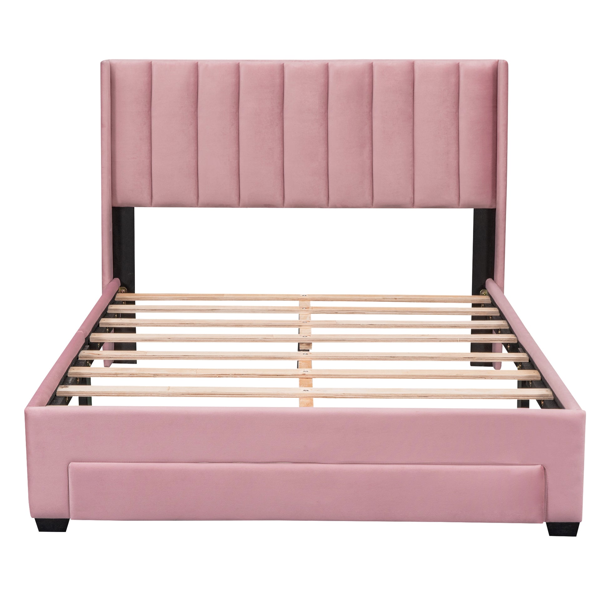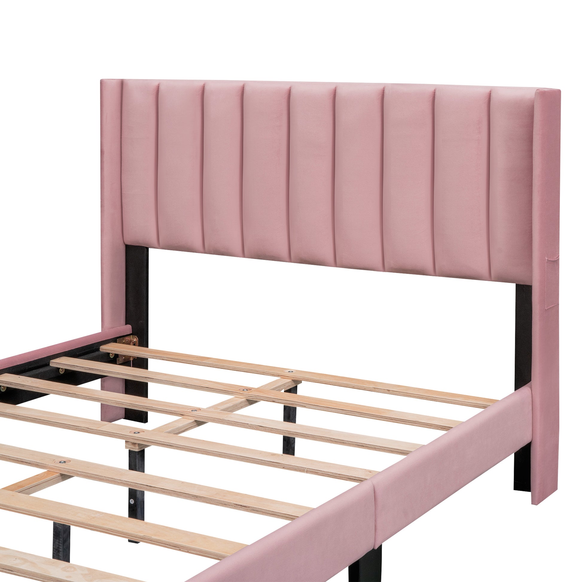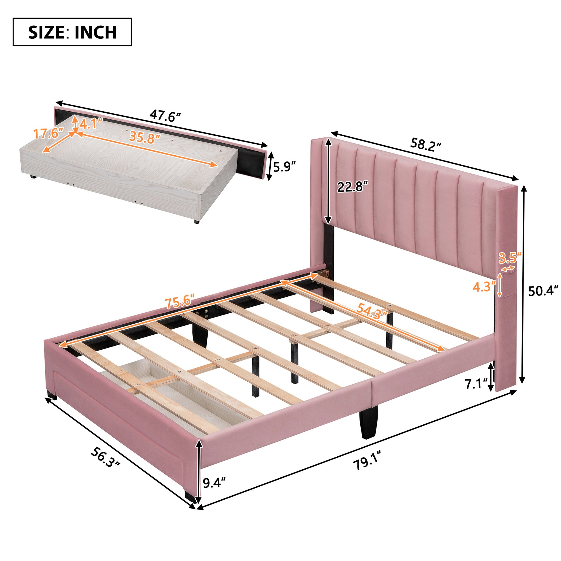 [No Box Spring required] With 8 reinforced slats; the mattress (not included) will be well supported and your body weight will be evenly distributed for a great sleeping experience. Enjoy the convenience and unparalleled ease of use that this queen size wood platform bed provides. Headboard is included as a comfy velvet fabric backrest that brings you and your partner a cozy feeling.