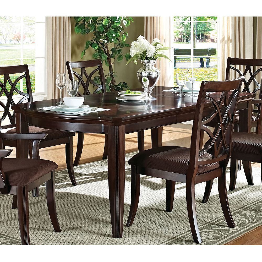 Romance : The Keenan collection features extended leaves providing a formal dining group with lattice details. A dark walnut finish outfits each piece in this traditional dining group which is sure to bring your home extra decor pieces.