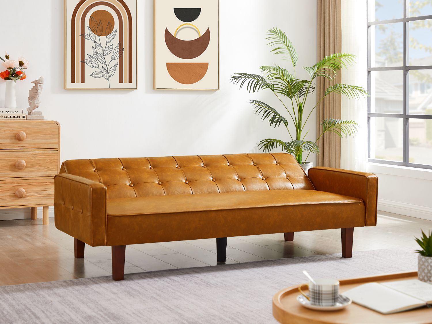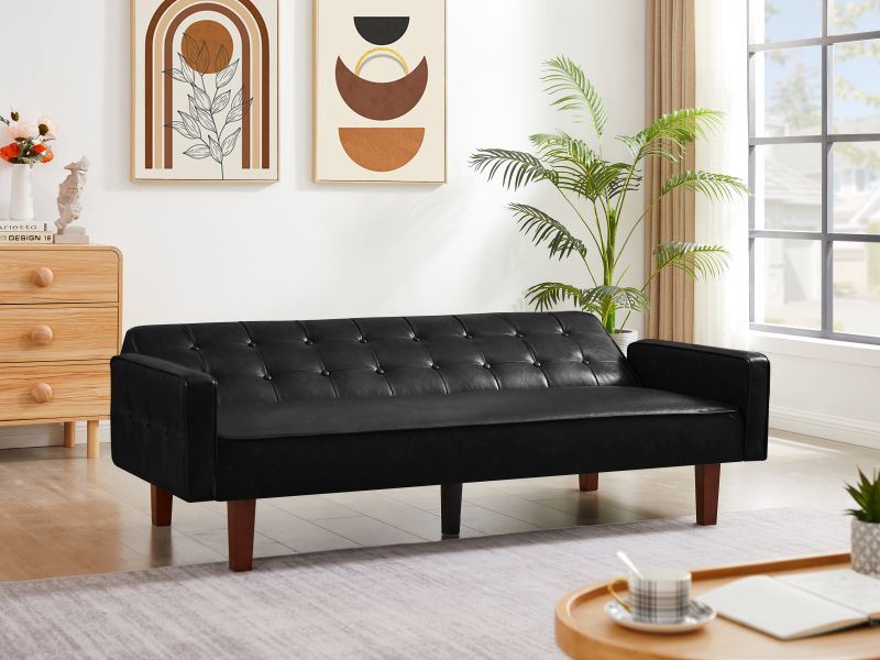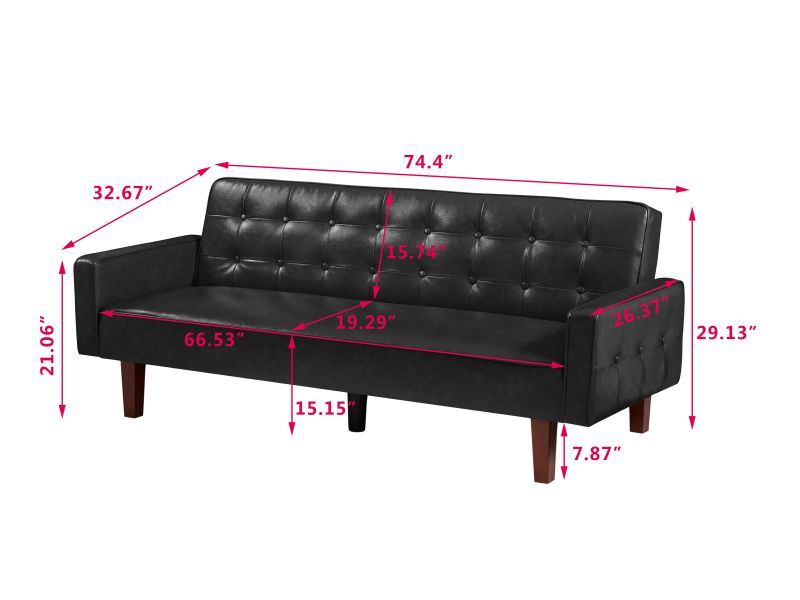 Living room sofa bed (black; brown; white) Features. 1: Perfect small space home furniture set with backrest pull tabs 2: Solid and durable: Eucalyptus wood frame and poplar wood legs; so that the living room sofa set can support up to 500IBs of weight. 3: Suitable for any decoration style: faux PU leather; simple modern style and classic colors; suitable for any type of decoration theme. Selling points. 1. Load-bearing weight: 500IBs 2. Easy to assemble Product size: 74.41"*32.67"*19.13" Net weight: 73.17lbs Package size: 67.71"*37.79"*7.0" Gross weight: 81lbs