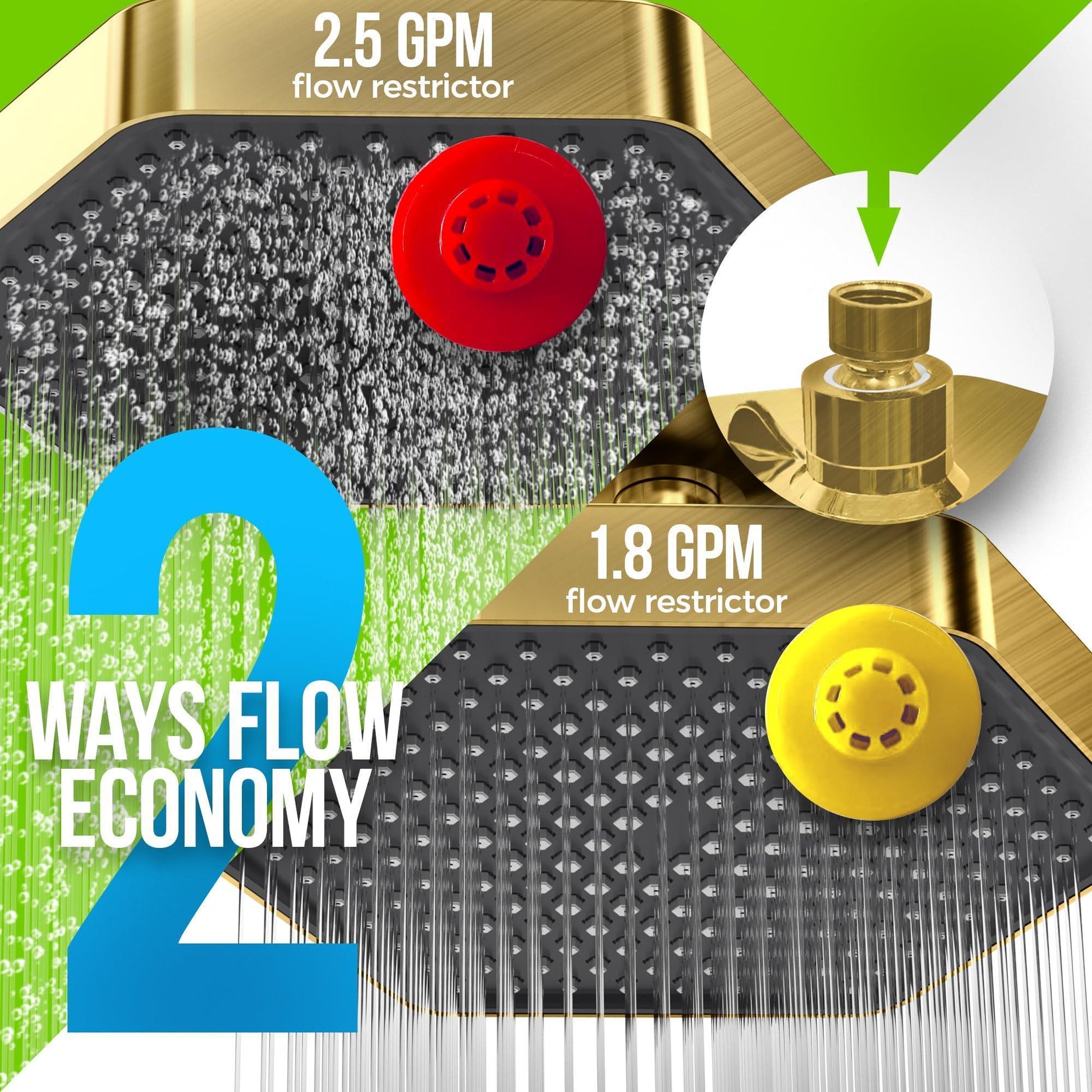 efficient water customization: personalize your shower with our filter shower head, offering 1.8 gpm & 2.5 gpm flow restrictors. tailor water efficiency for an ideal, personalized shower.