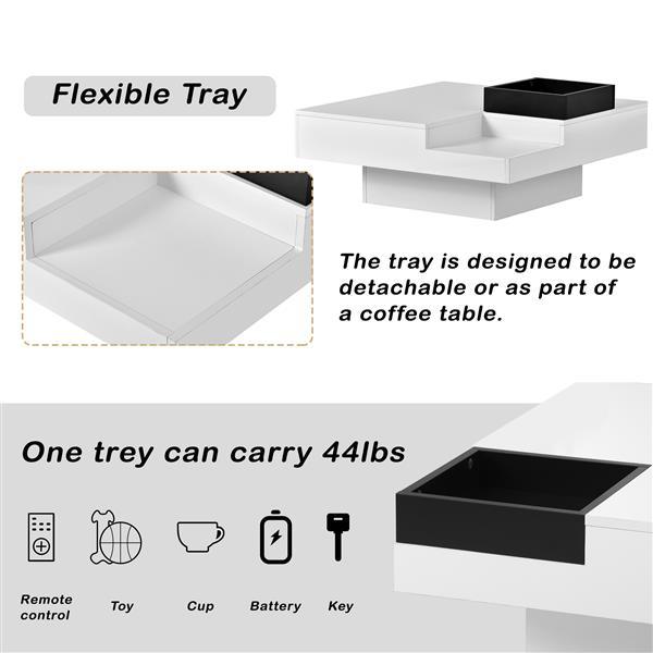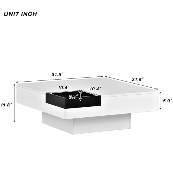 square tabletop reveals the owner's style and charm. Simple but not mediocre linear design, bringing a chic aesthetic to the whole living room or reception room.The product is made of high-density 15mm MDF, with UV highlight surface. Making it durable, waterproof and easy to care.The outstanding load-bearing capacity of this coffee table let it to be a furniture which is suitable for living room, terrace or gazebo.Three accessories are equipped with the LED strip lights, that including remote control, signal receiver, and electric pressure converter. A detailed instruction is placed inside the controller box.