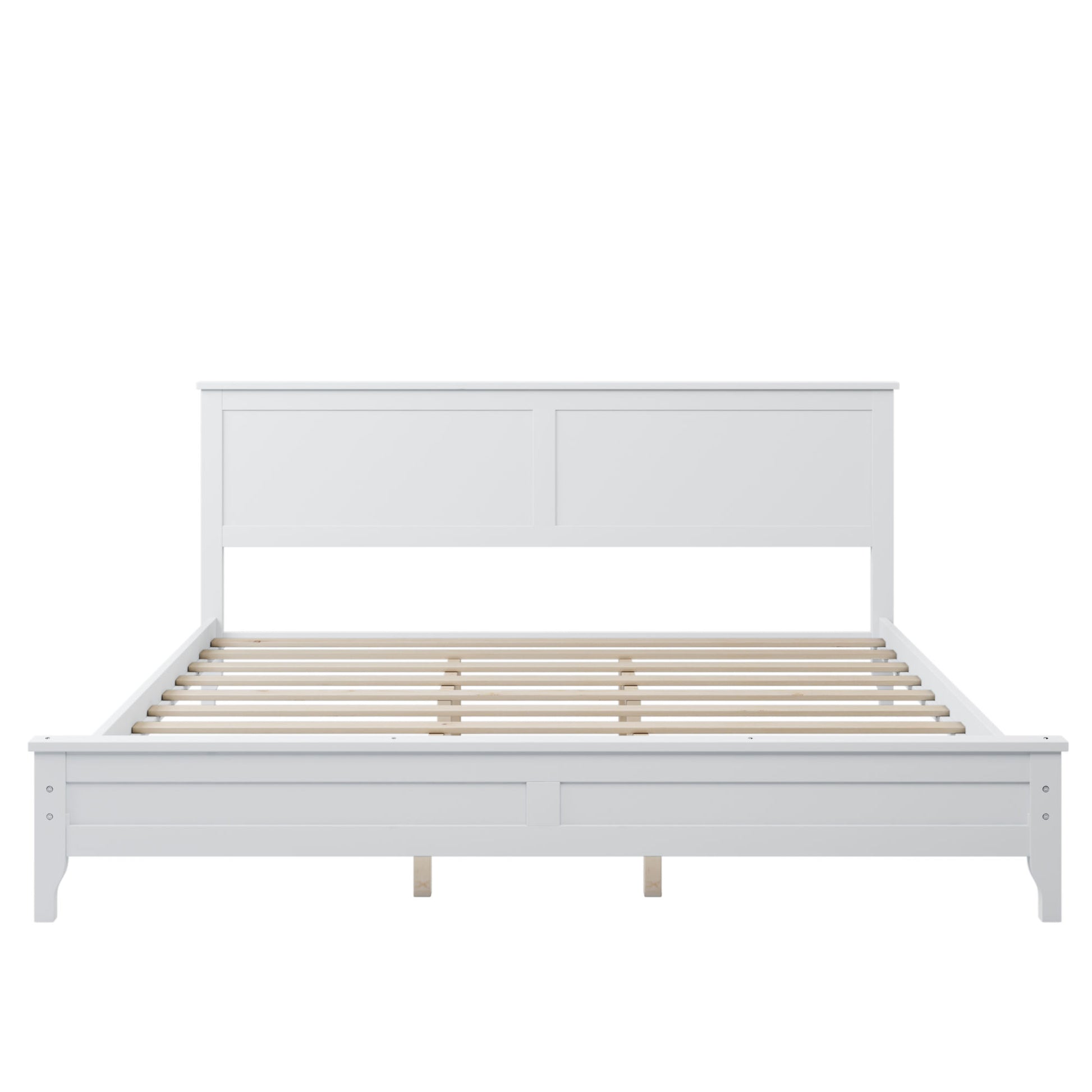 The king bed is crafted with pine wood and MDF. The elegant simple slat design headboard of this wood king size white bed adopts an exquisite flat design to complete the bedroom style. A standard king-size mattress is recommended.If ''simplicity'' and ''elegance''are the words you live by, then look no further: you’ve found the right dresser for your treasure's room! We like its versatile look, which blends easily with whatever might inspire you… and we guarantee you'll like it as much as we do!