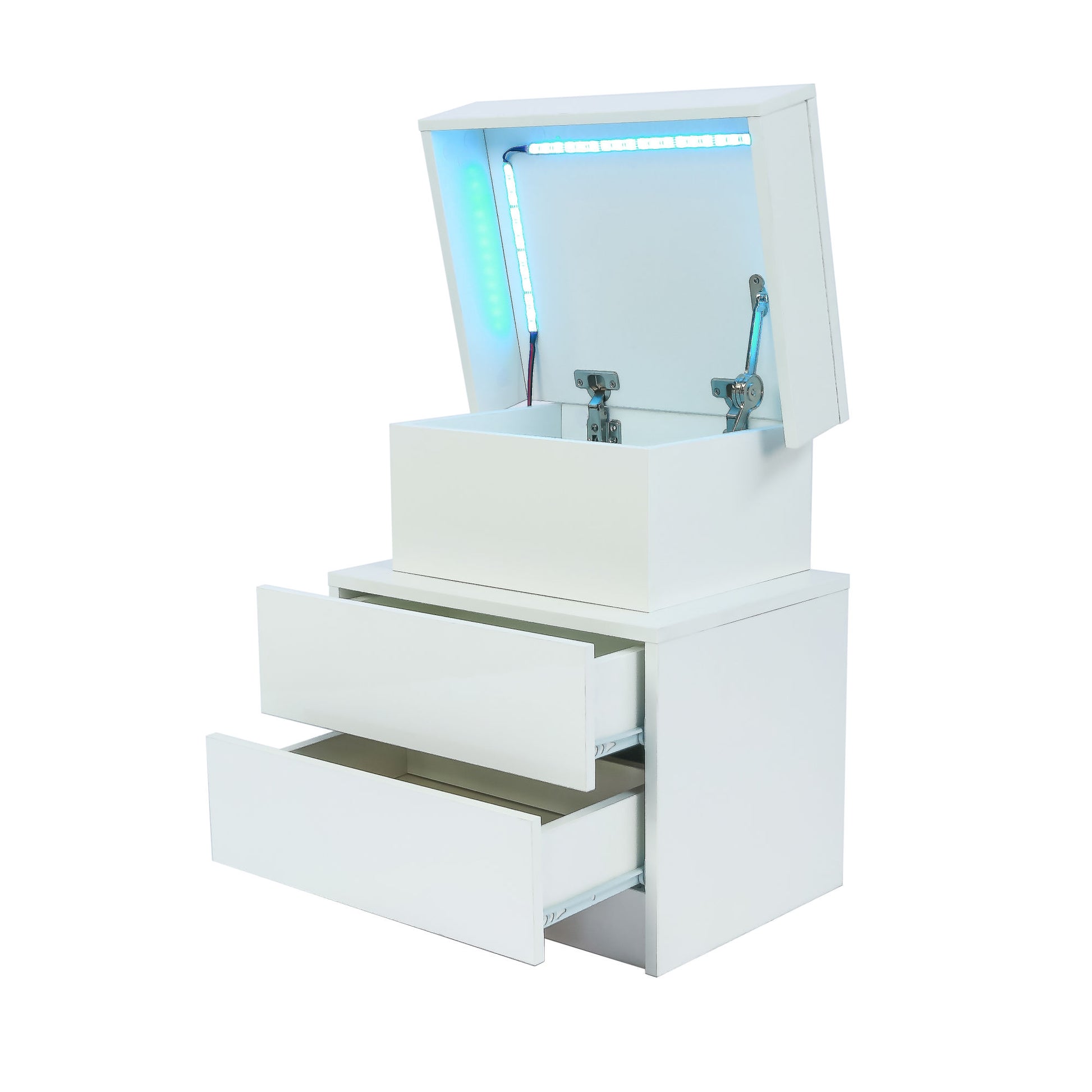 Modern design: It has a LED strip that can change colors and 2 drawers.