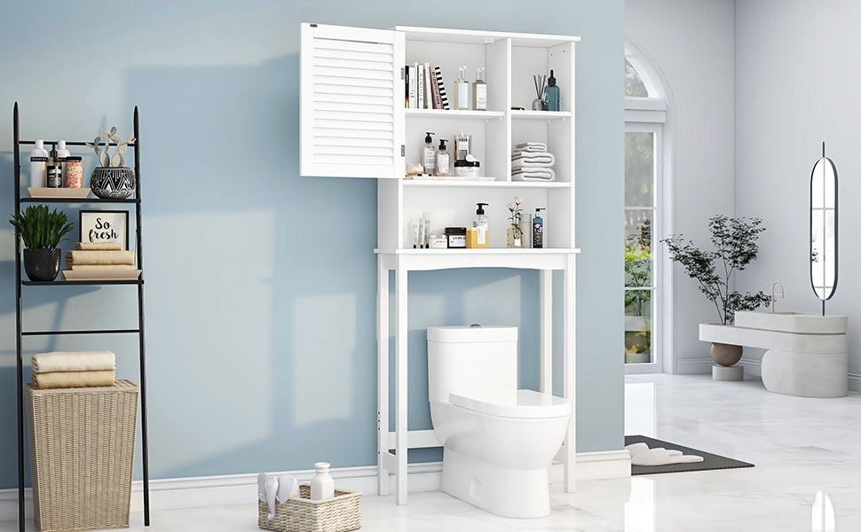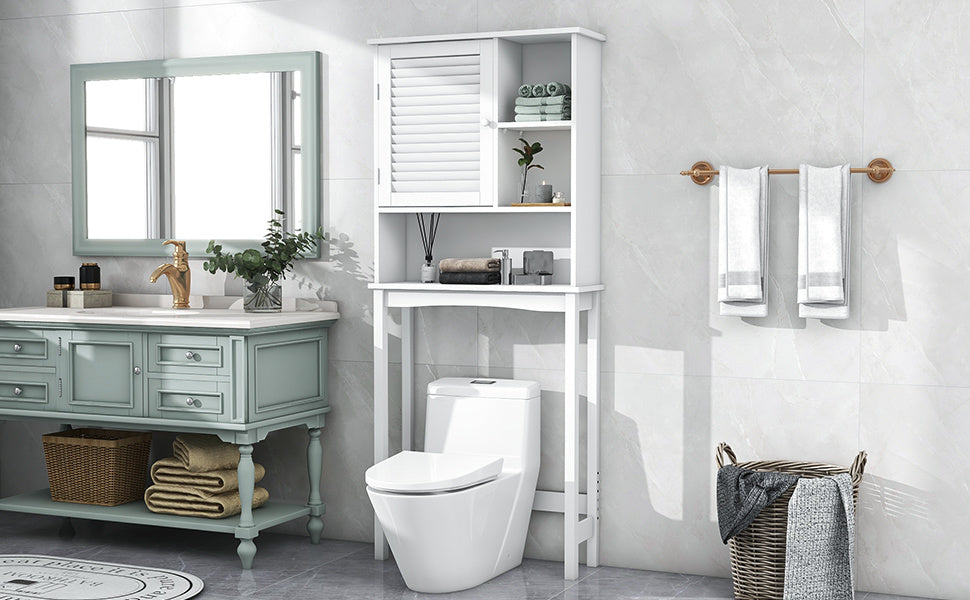 Home Over-The-Toilet Shelf Bathroom Storage Space Saver with Adjustable Shelf Collect Cabinet (White)