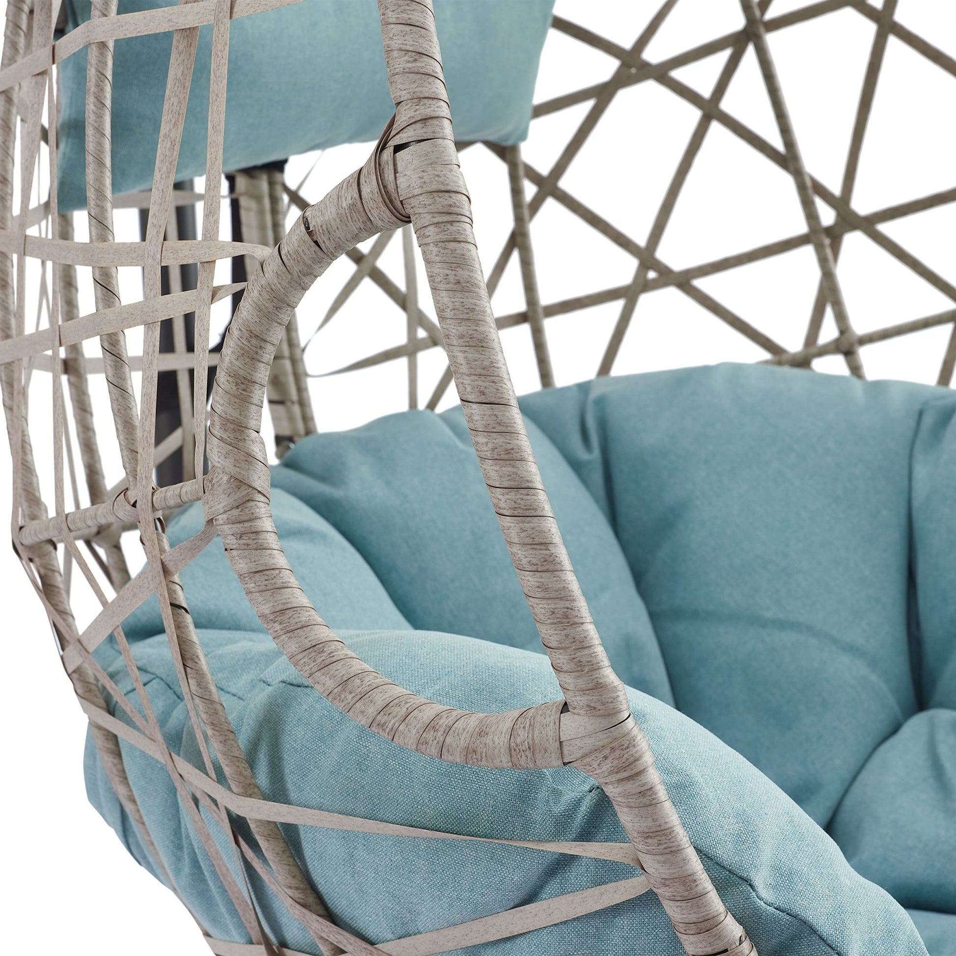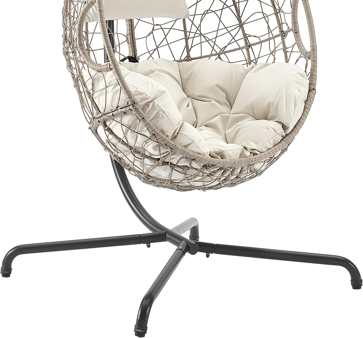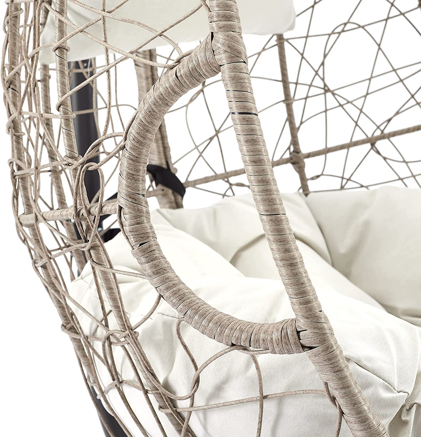 High Quality Material: The stylish beige wicker hanging basket chairs crafted with strong steel frame wrapped in handwoven premium PE wicker, waterproof and built to last, easy to maintenance. It will be an ideal modern accessory for your outdoor space.