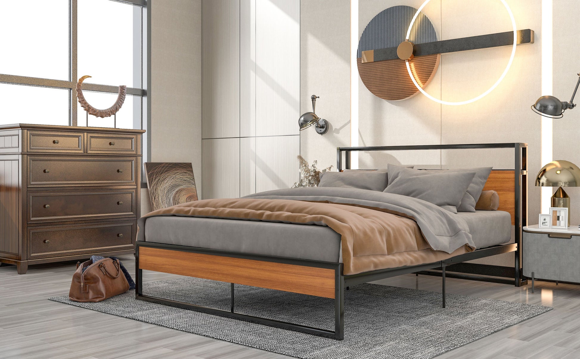 Modern Style and Exquisite Craftsmanship: The combination of metal bed frame and beautiful wooden board brings a natural accent to your home ,Modern rustic style and versatility for many occasions, from large bedrooms to small apartments