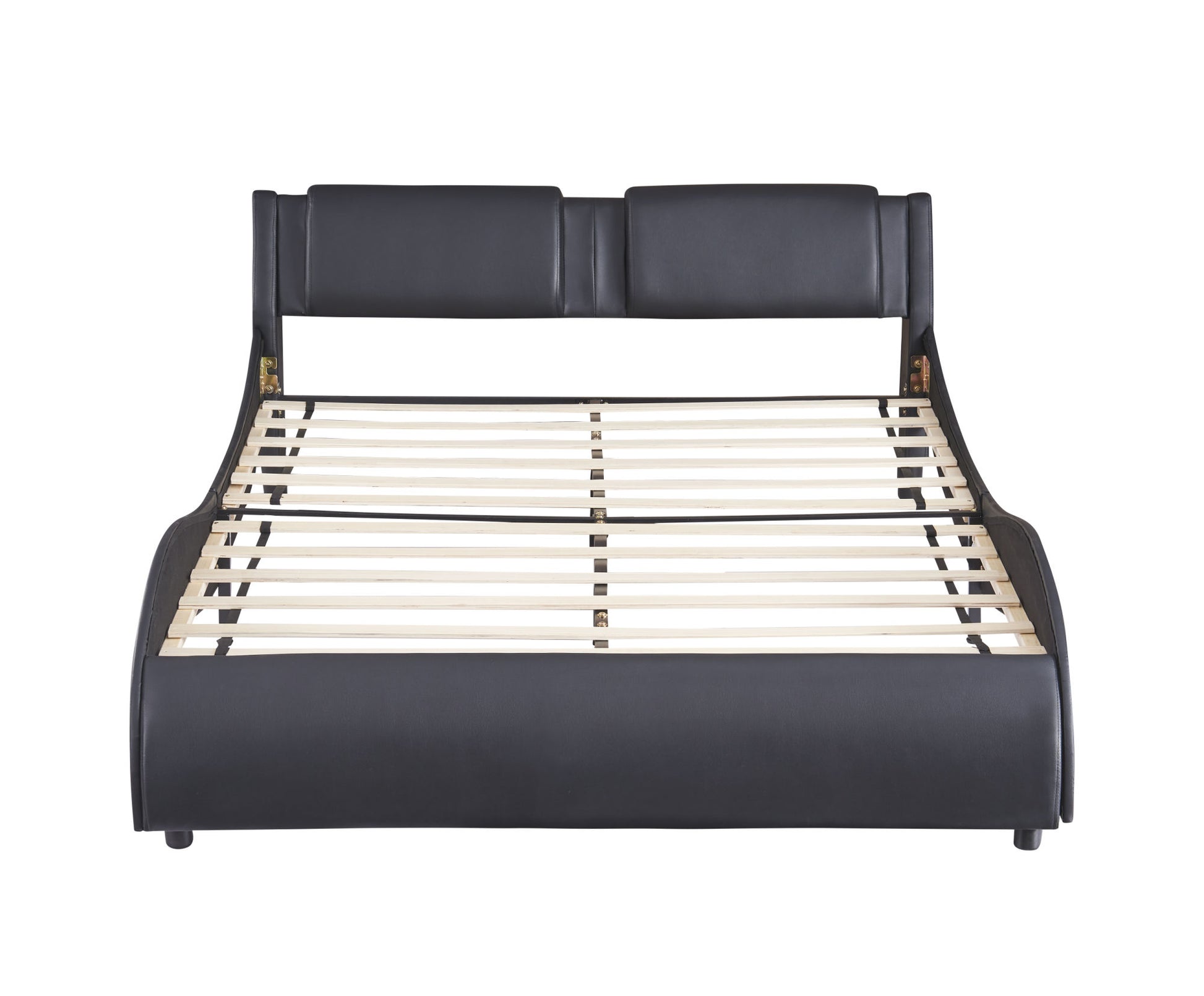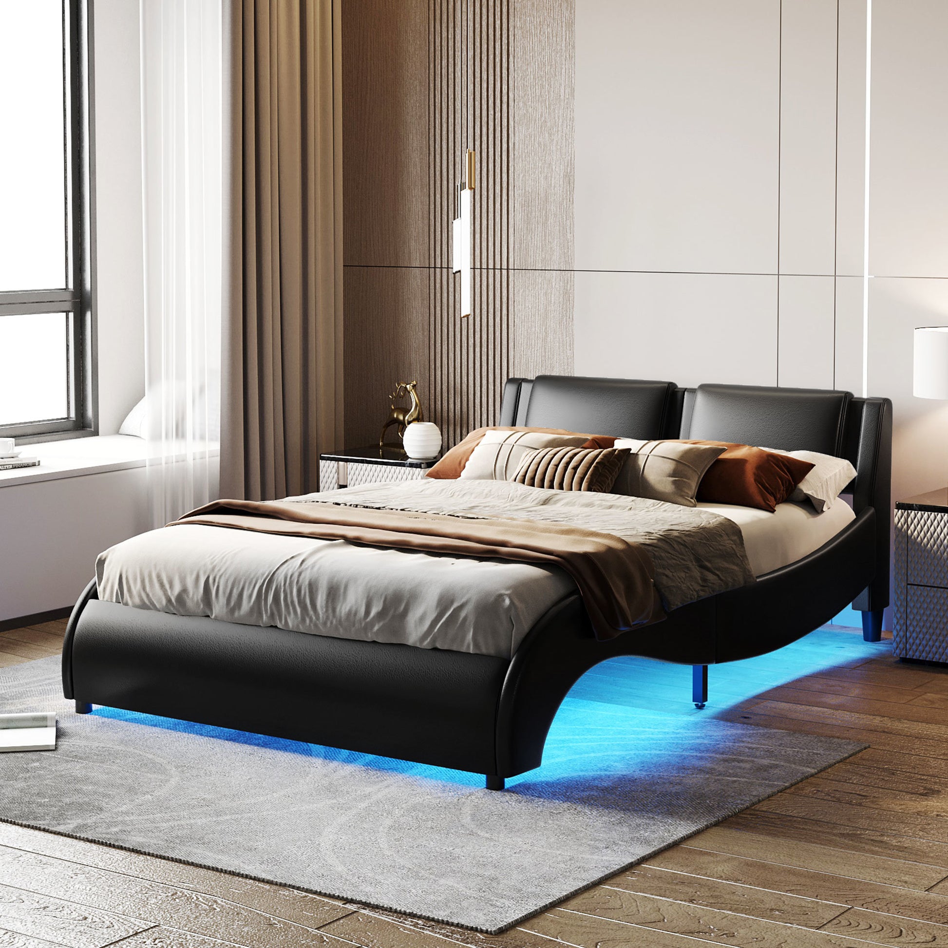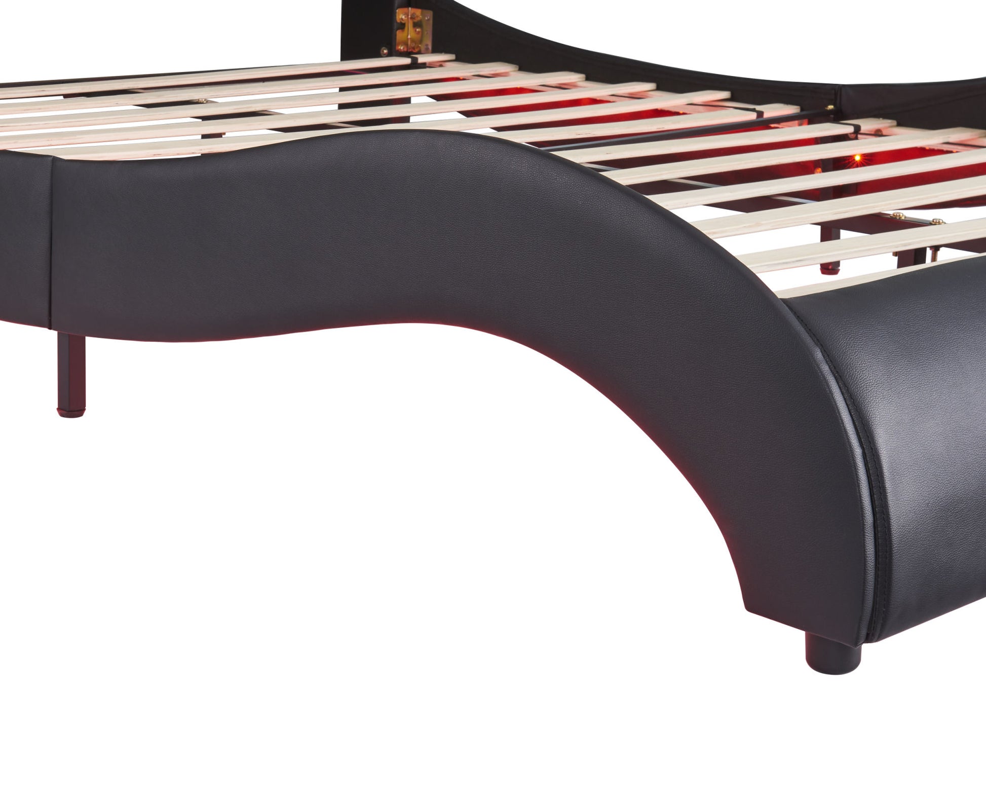 Impression & Beautiful: Upholstered Faux Leather Platform Bed with LED Light Headboard, this unique bed will be the focus in bedroom when friends coming by.This bed brings rich rural life style to bedroom, not only offers great fun for your bedtime but also adds highlights to bedroom.