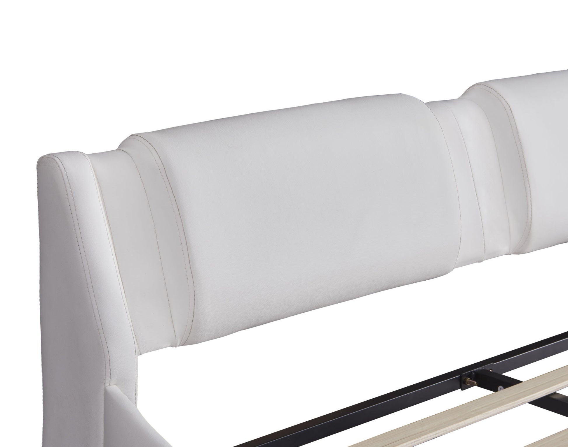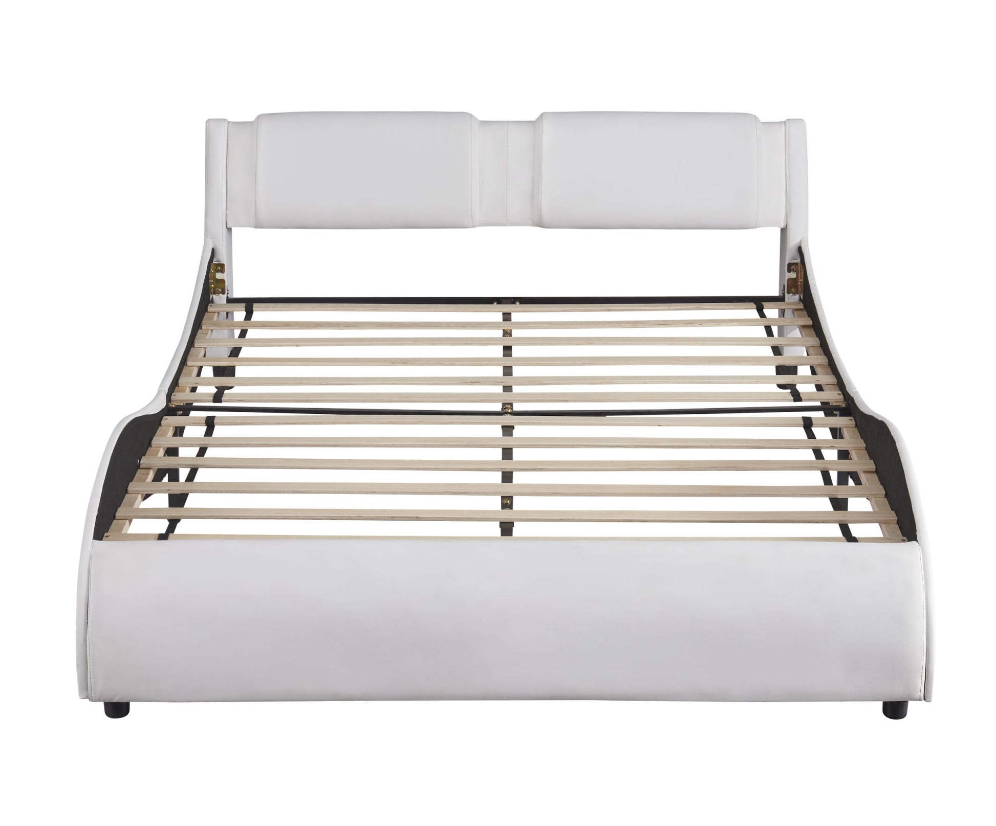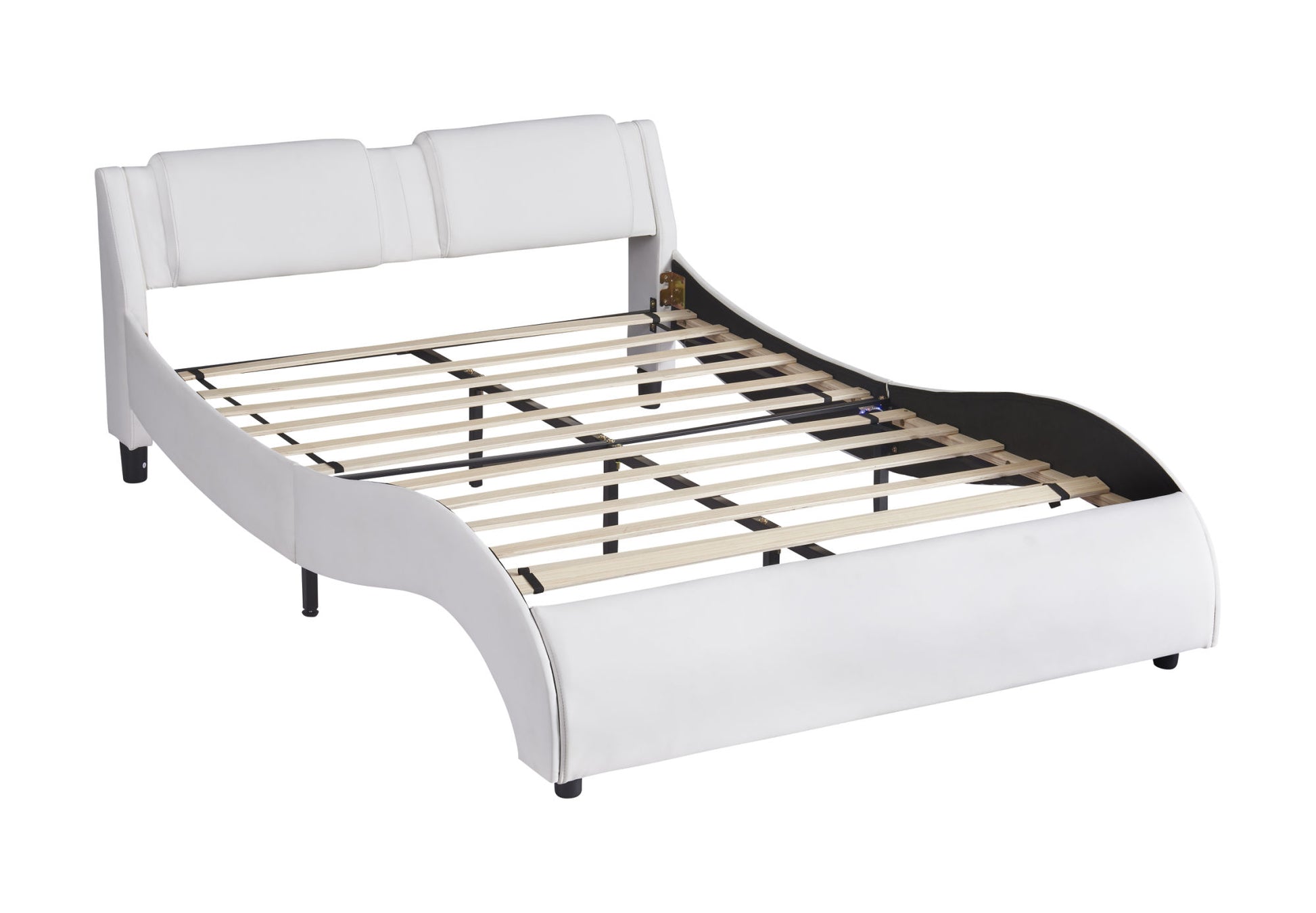 Impression & Beautiful: Upholstered Faux Leather Platform Bed with LED Light Headboard, this unique bed will be the focus in bedroom when friends coming by.This bed brings rich rural life style to bedroom, not only offers great fun for your bedtime but also adds highlights to bedroom.