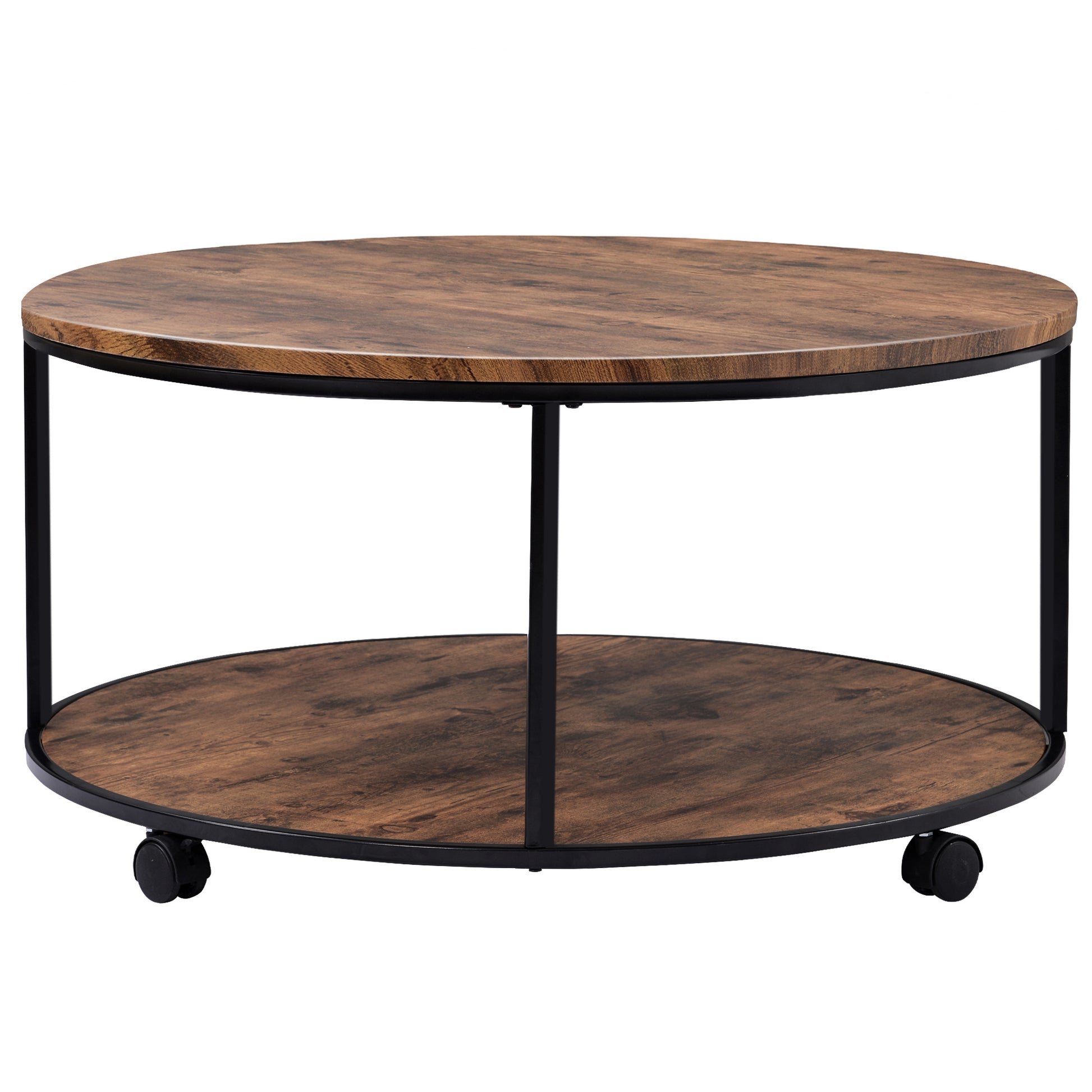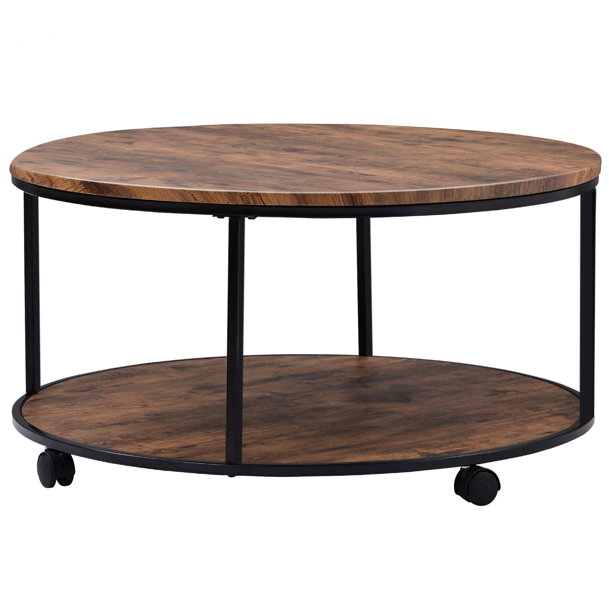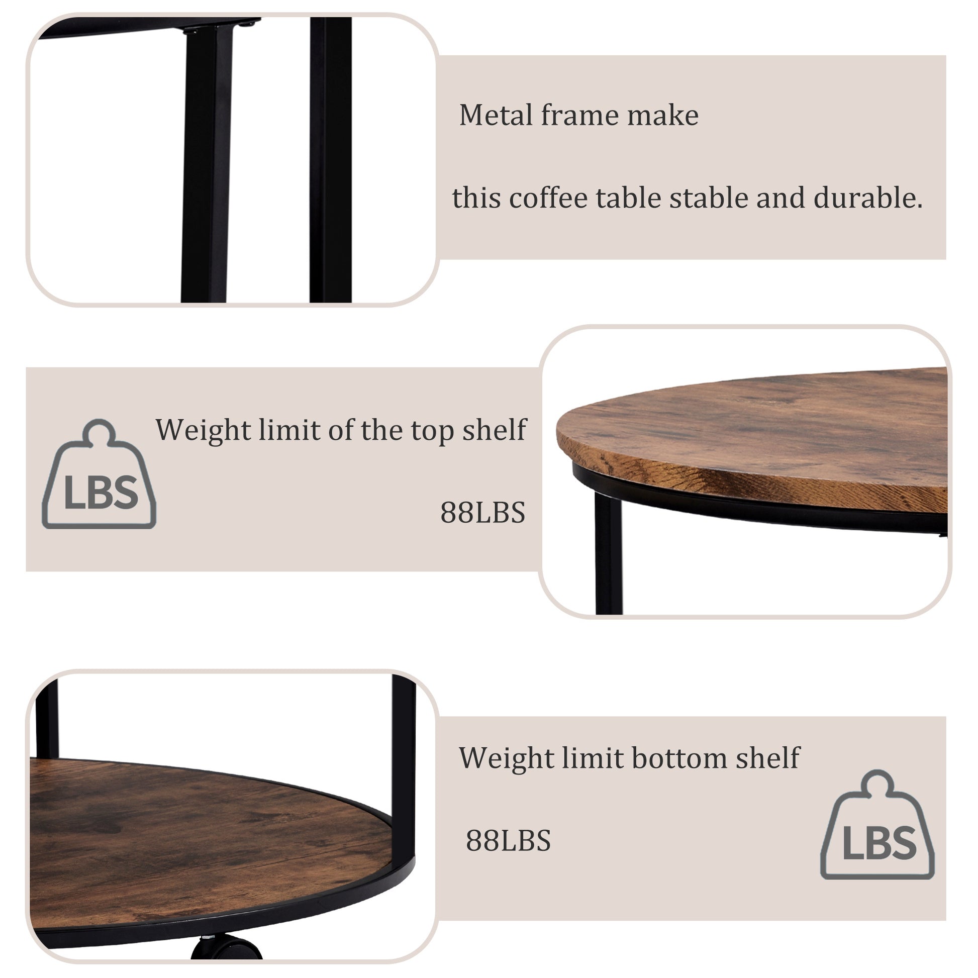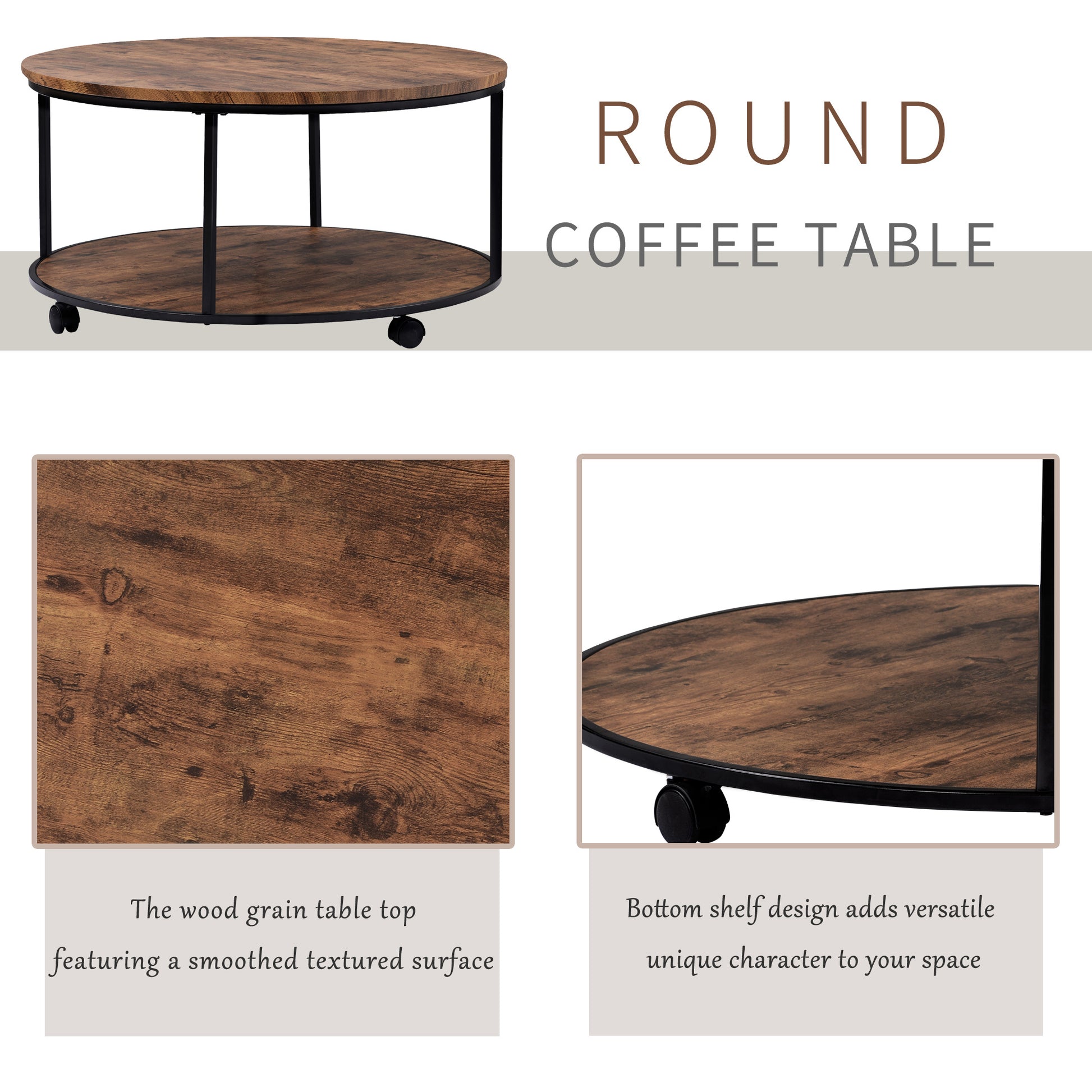 ON-TREND Round Coffee Table with Caster Wheels and Wood Textured Surface for Living Room; φ35.5'(Distressed Brown)