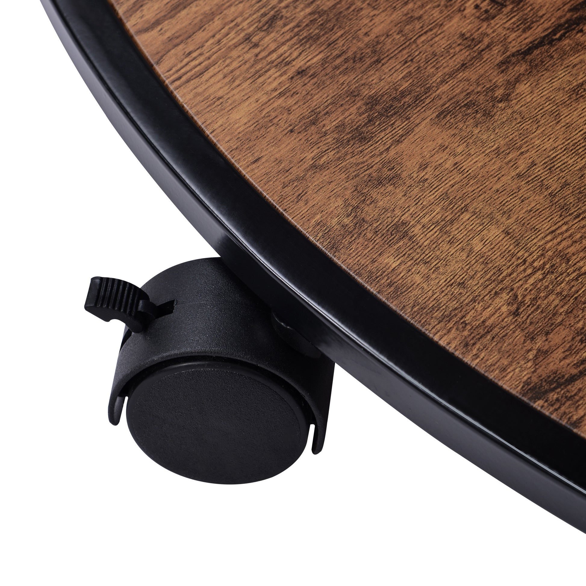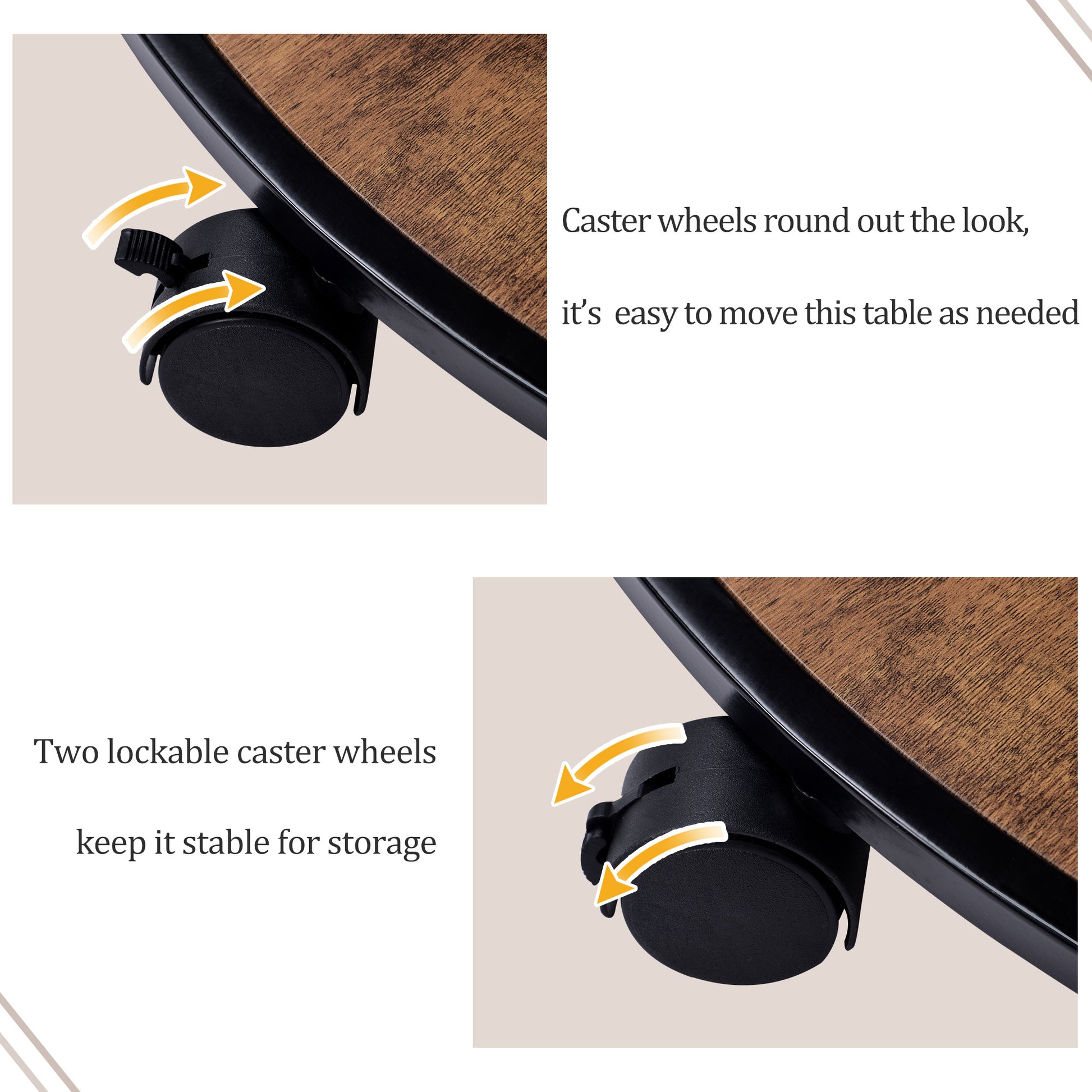 Round Coffee Table with Caster Wheels and Wood Textured Surface