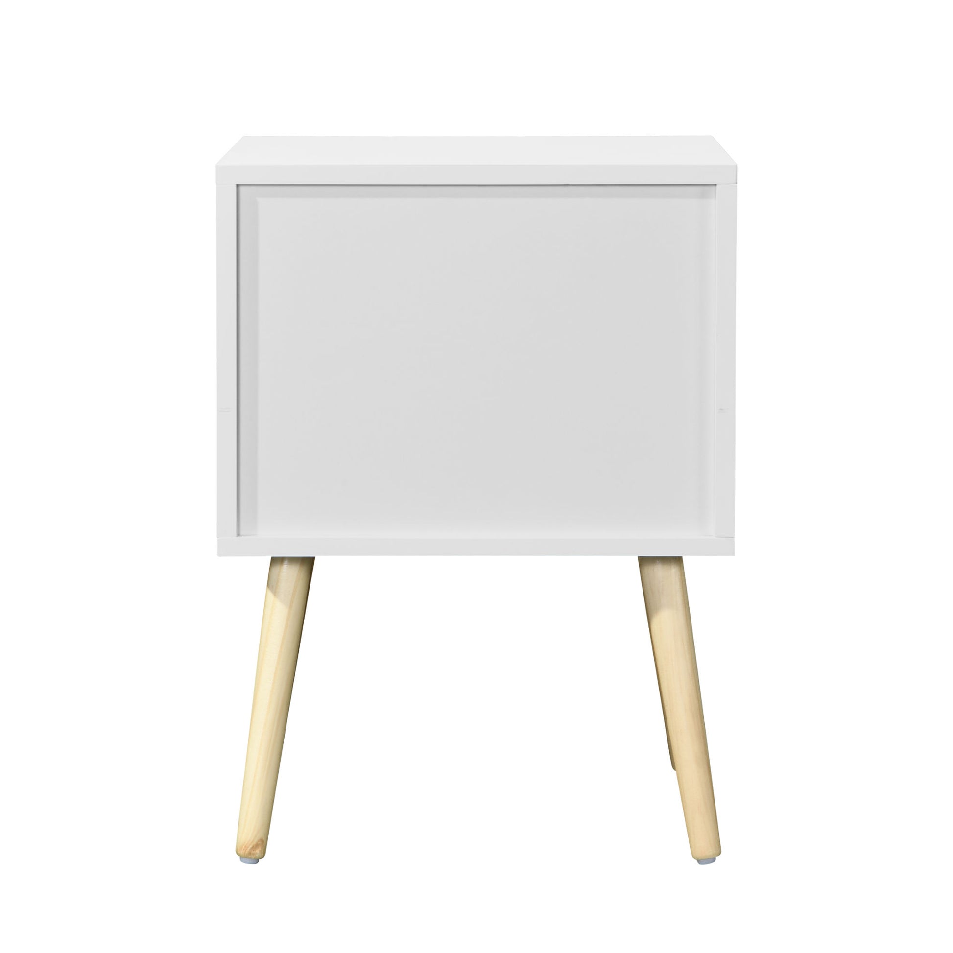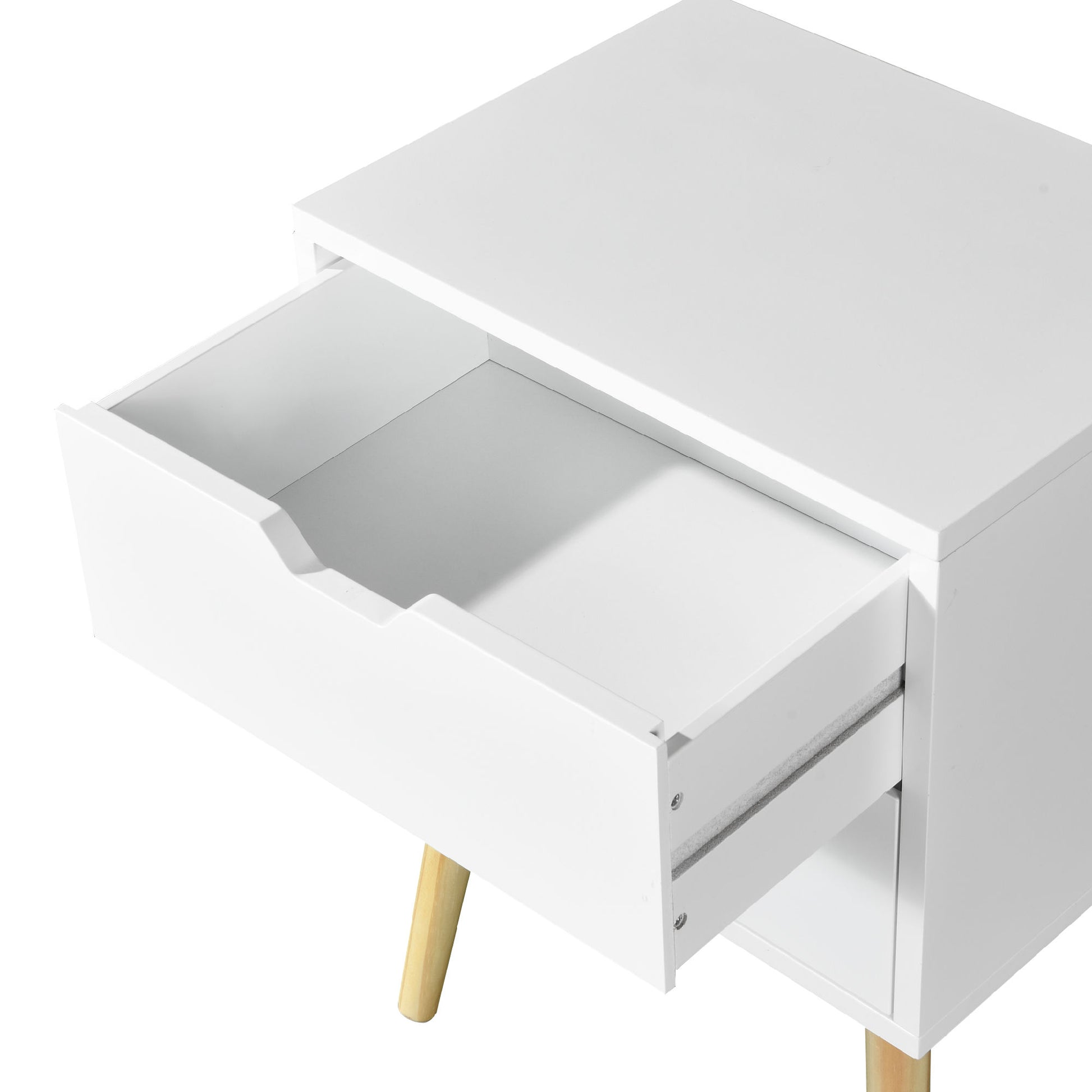 Side Table with 2 Drawer and Rubber Wood Legs, Mid-Century Modern Storage Cabinet for Bedroom Living Room Furniture, White About this item