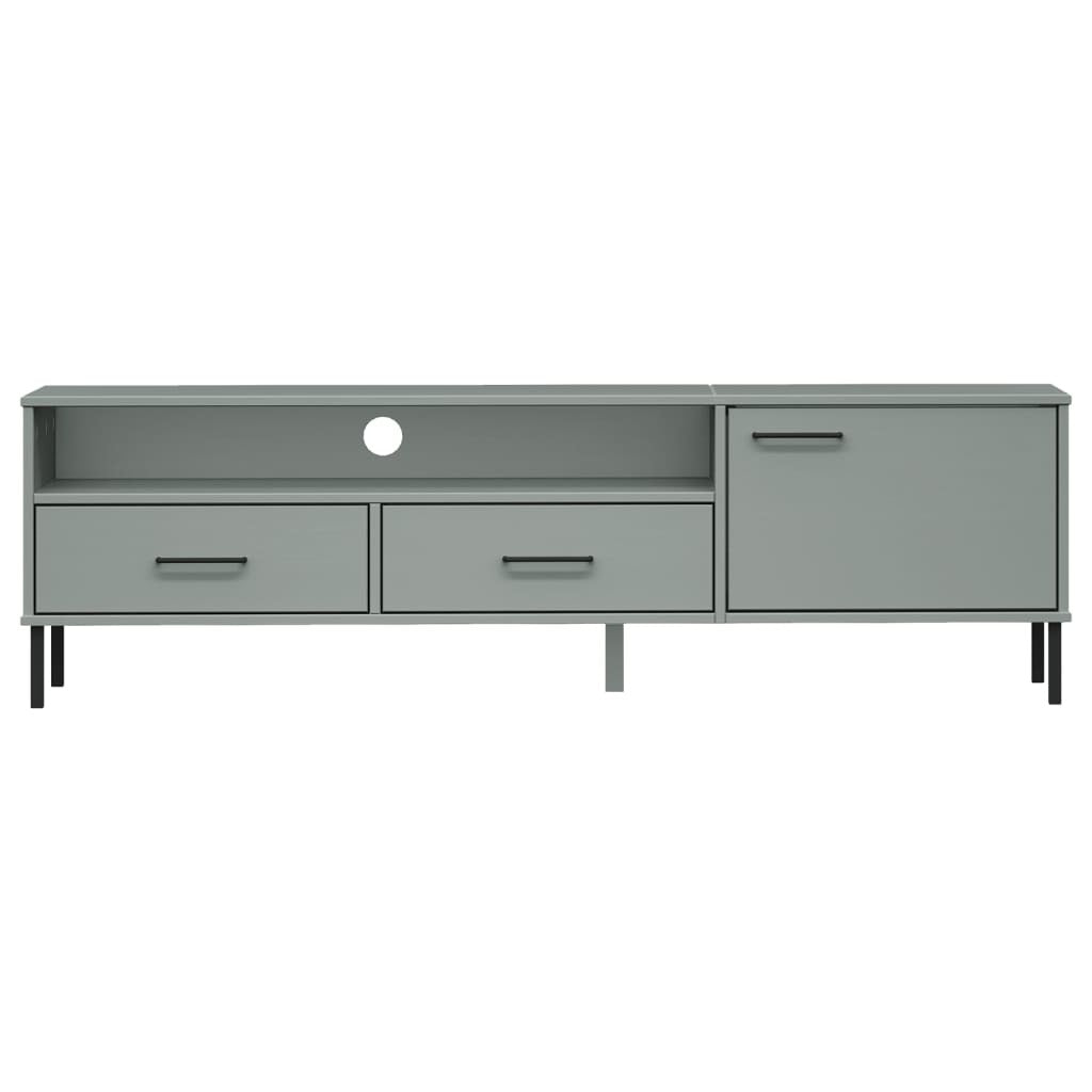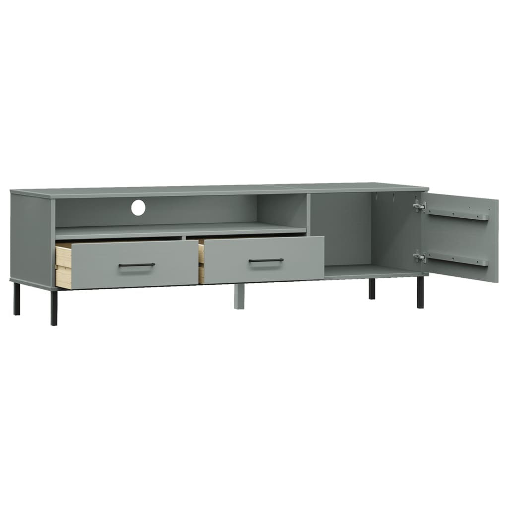 TV Stand with Metal Legs Gray Solid Wood Pine