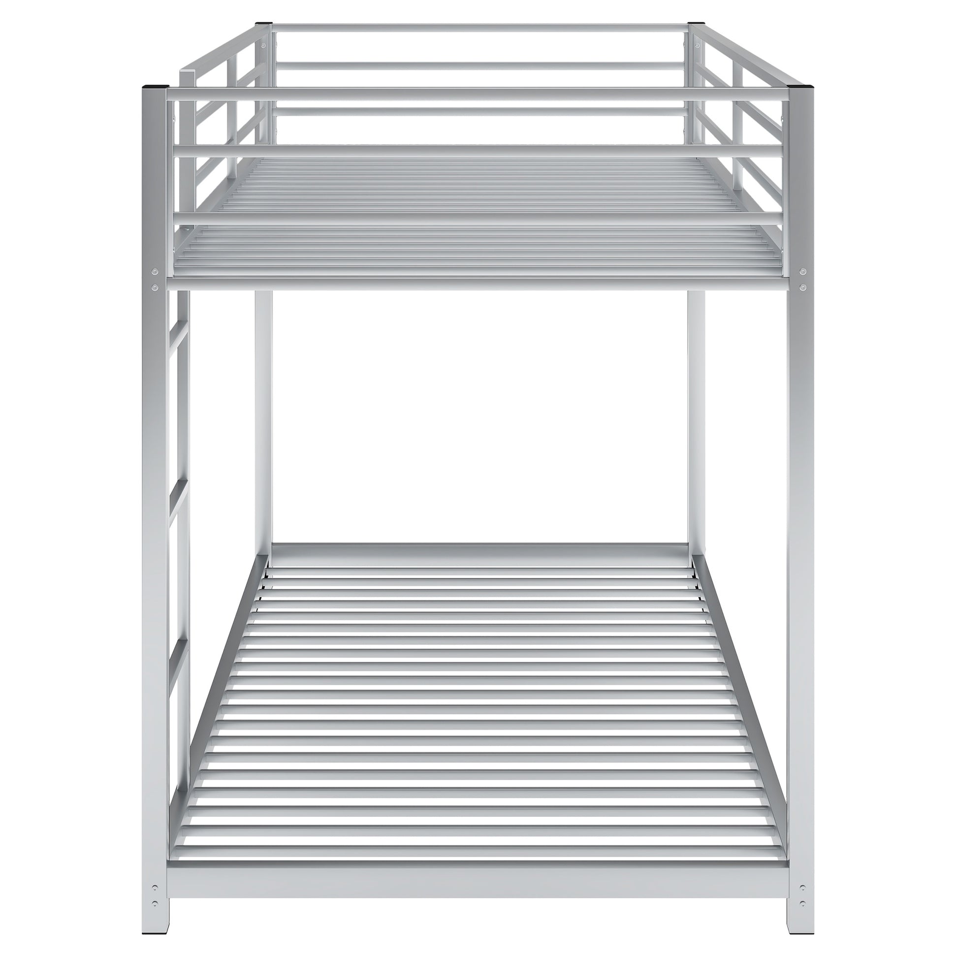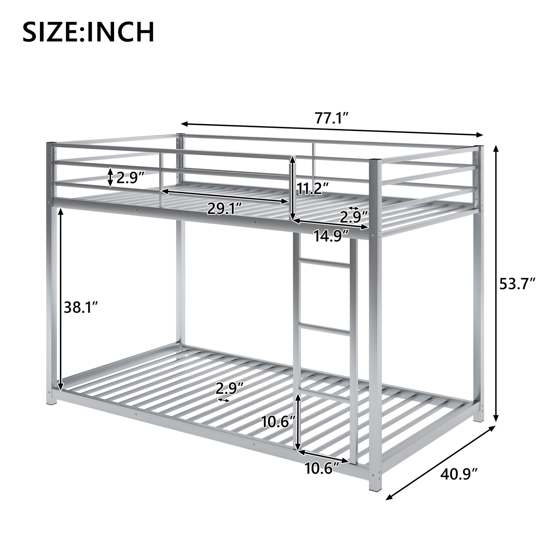 This bunk bed comes with low bunk design which is perfect for you. You can decorate the down bed without worrying falling off or you can use the down bed as a storage shelf to store away stuff. The upper bed is equipped with full-length guardrail which guarantee safety. The bed is made of high-quality steel; so it won't make any noise and the ladder won't hurt your bare feet. Providing great support for users; the bed will offer superior experience!