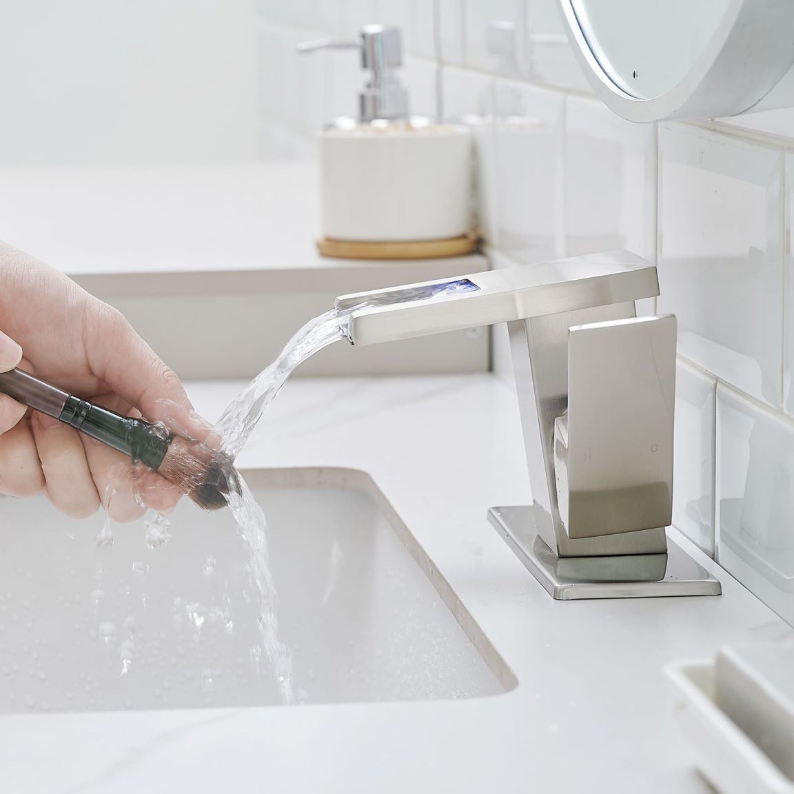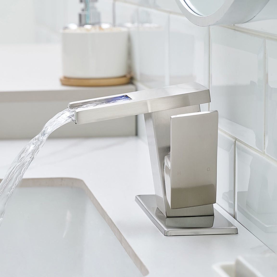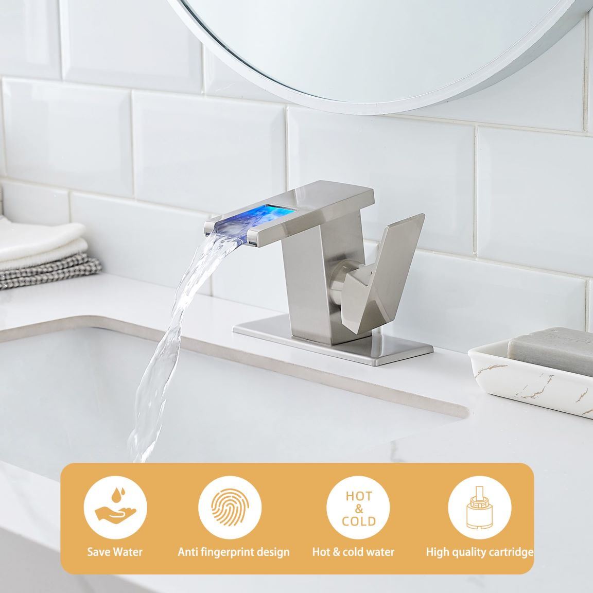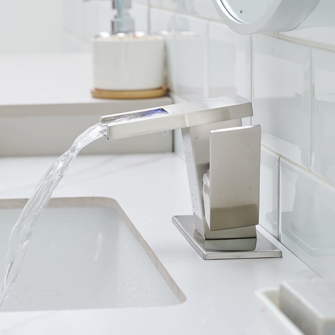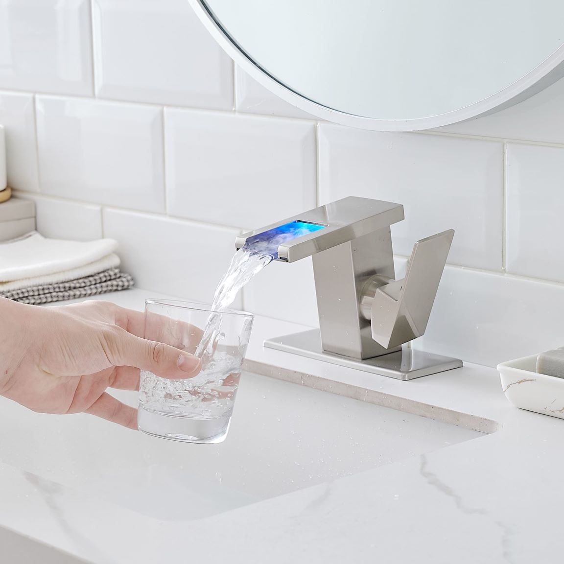 WATERFALL LED FAUCET: Waterfall spout and single handle for effortless flow and easily water adjust..